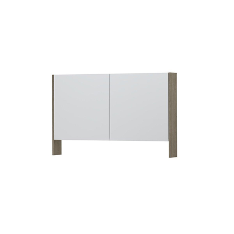 INK SPK3 Spiegelkast - 120x14x74cm - 2 deuren - dubbelzijdige Spiegel - open planchet - schakelaar en stopcontact - MFC Greige eiken