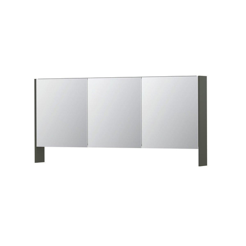 INK SPK3 Spiegelkast - 160x14x74cm - 3 deuren - dubbelzijdige Spiegel - open planchet - schakelaar en stopcontact - MDF lak Mat beton groen