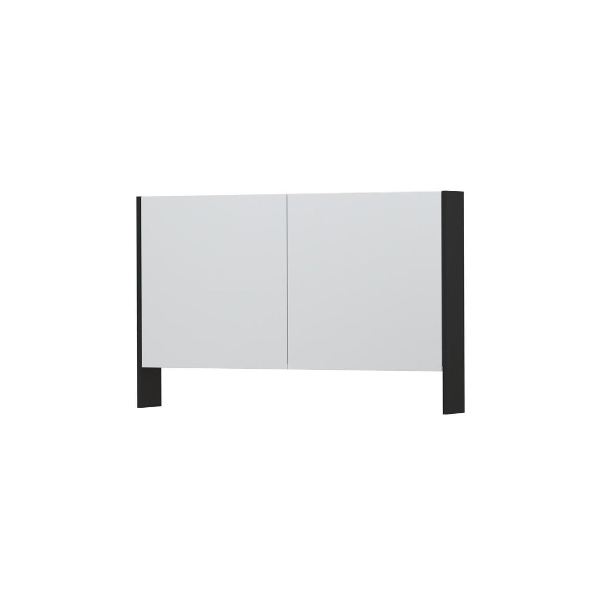 INK SPK3 Spiegelkast - 120x14x74cm - 2 deuren - dubbelzijdige Spiegel - open planchet - schakelaar en stopcontact - MDF lak zwart mat