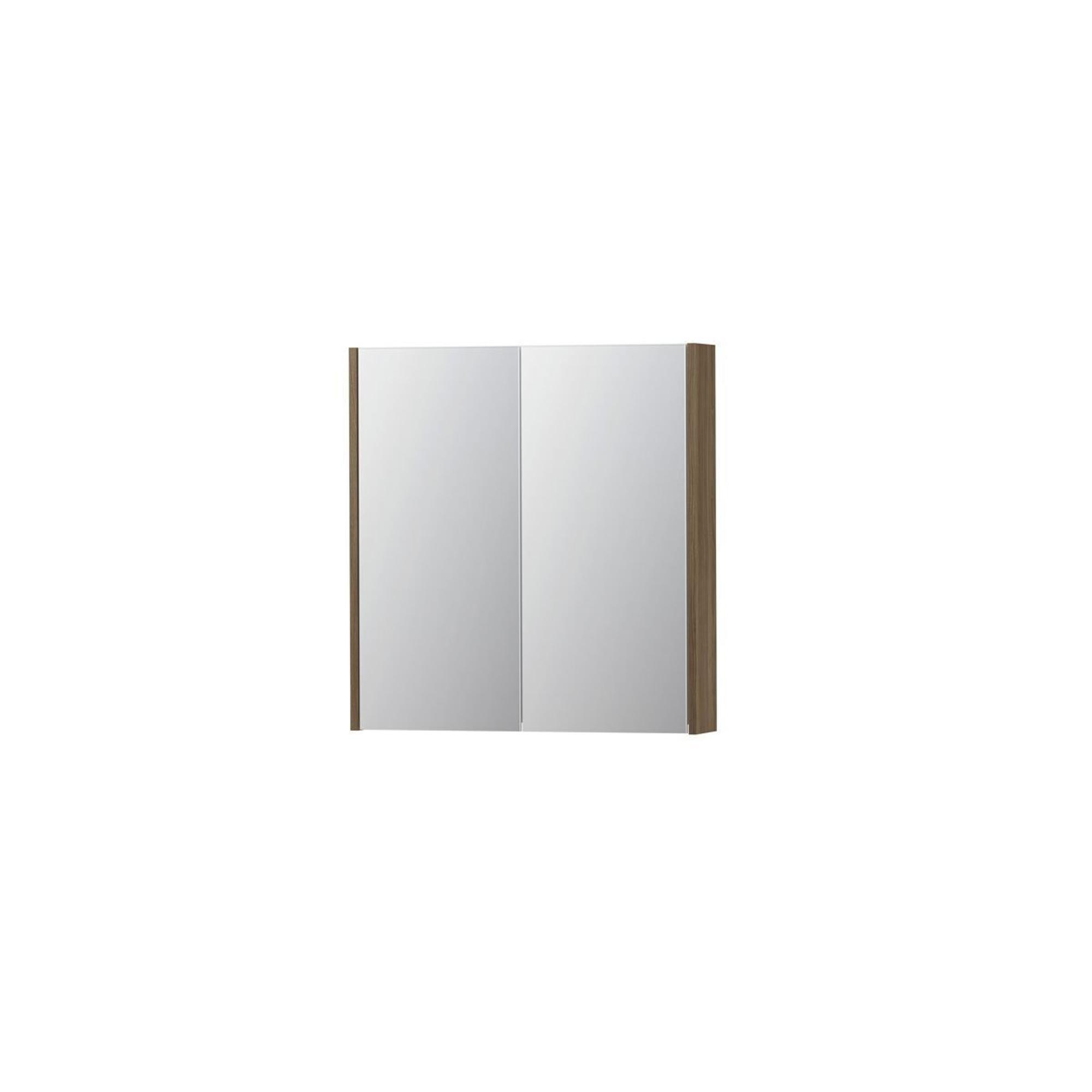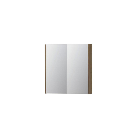 INK SPK2 Spiegelkast - 70x14x74cm - 2 deuren - dubbelzijdige Spiegel - schakelaar en stopcontact - MFC Zuiver eiken
