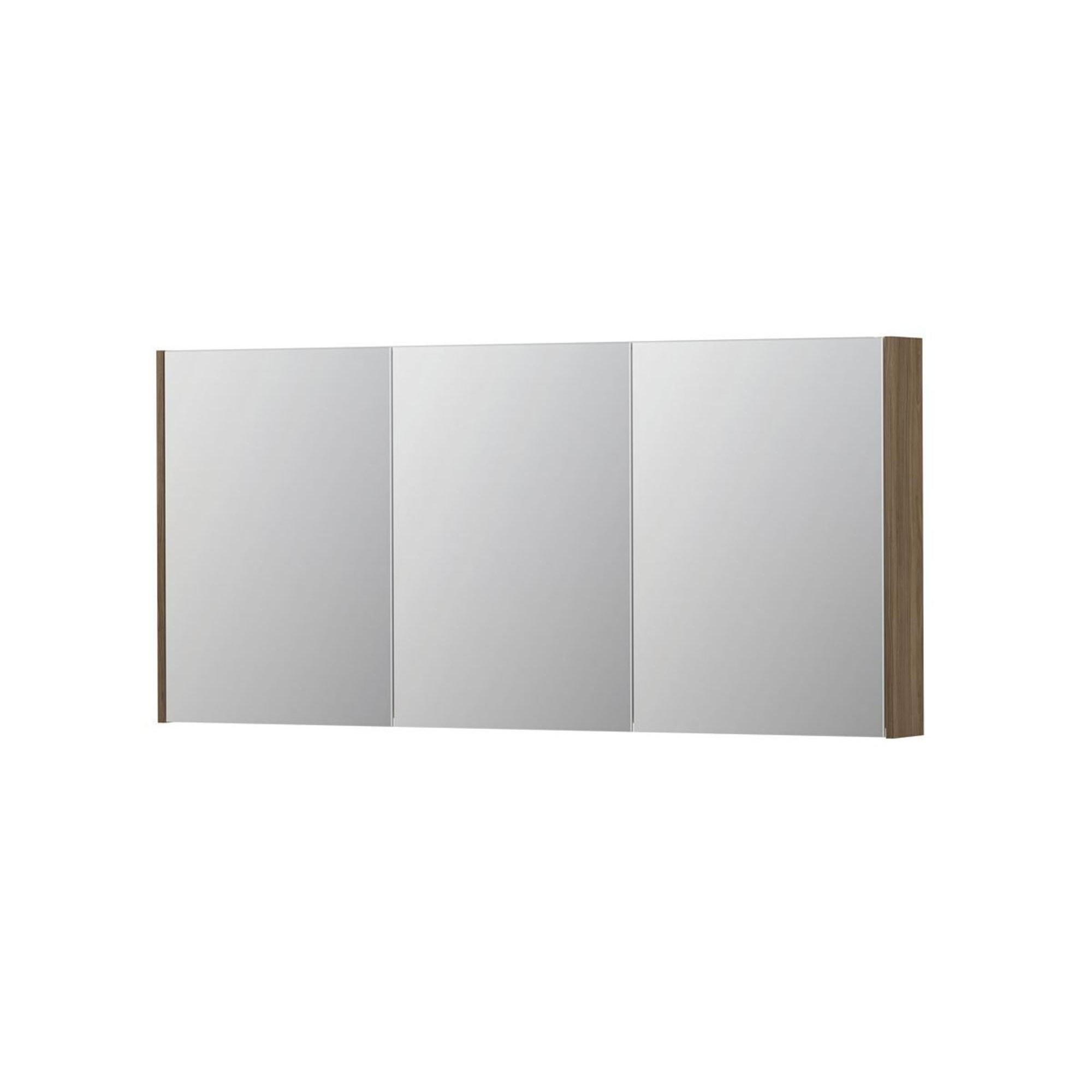 INK SPK2 Spiegelkast - 160x14x74cm - 3 deuren - dubbelzijdige Spiegel - schakelaar en stopcontact - MFC Zuiver eiken