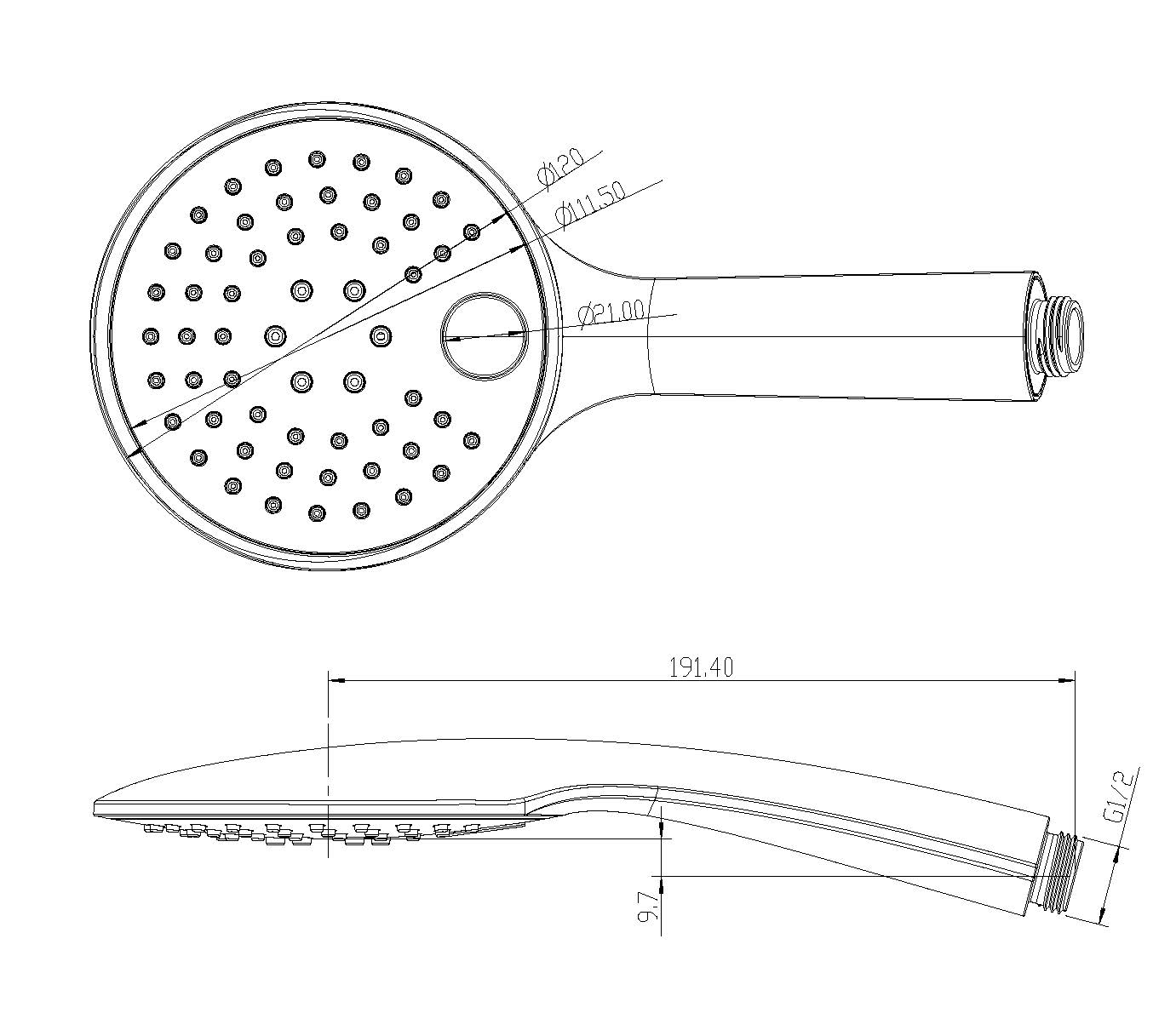 Wiesbaden Rain handdouche 3 standen mat zwart