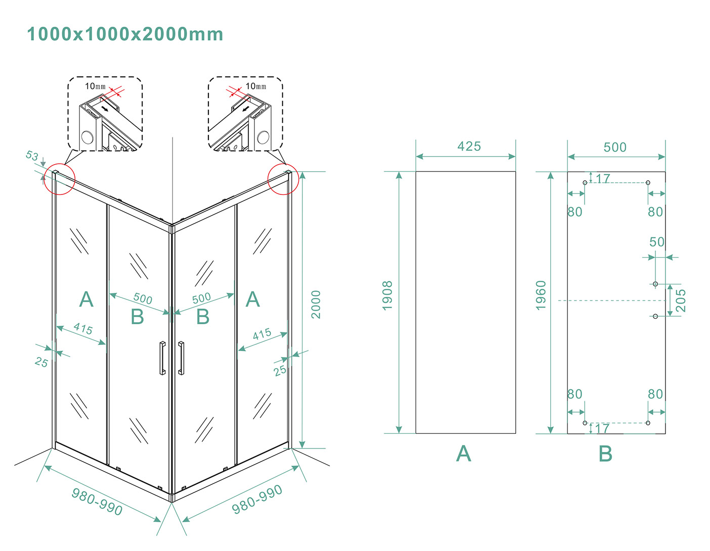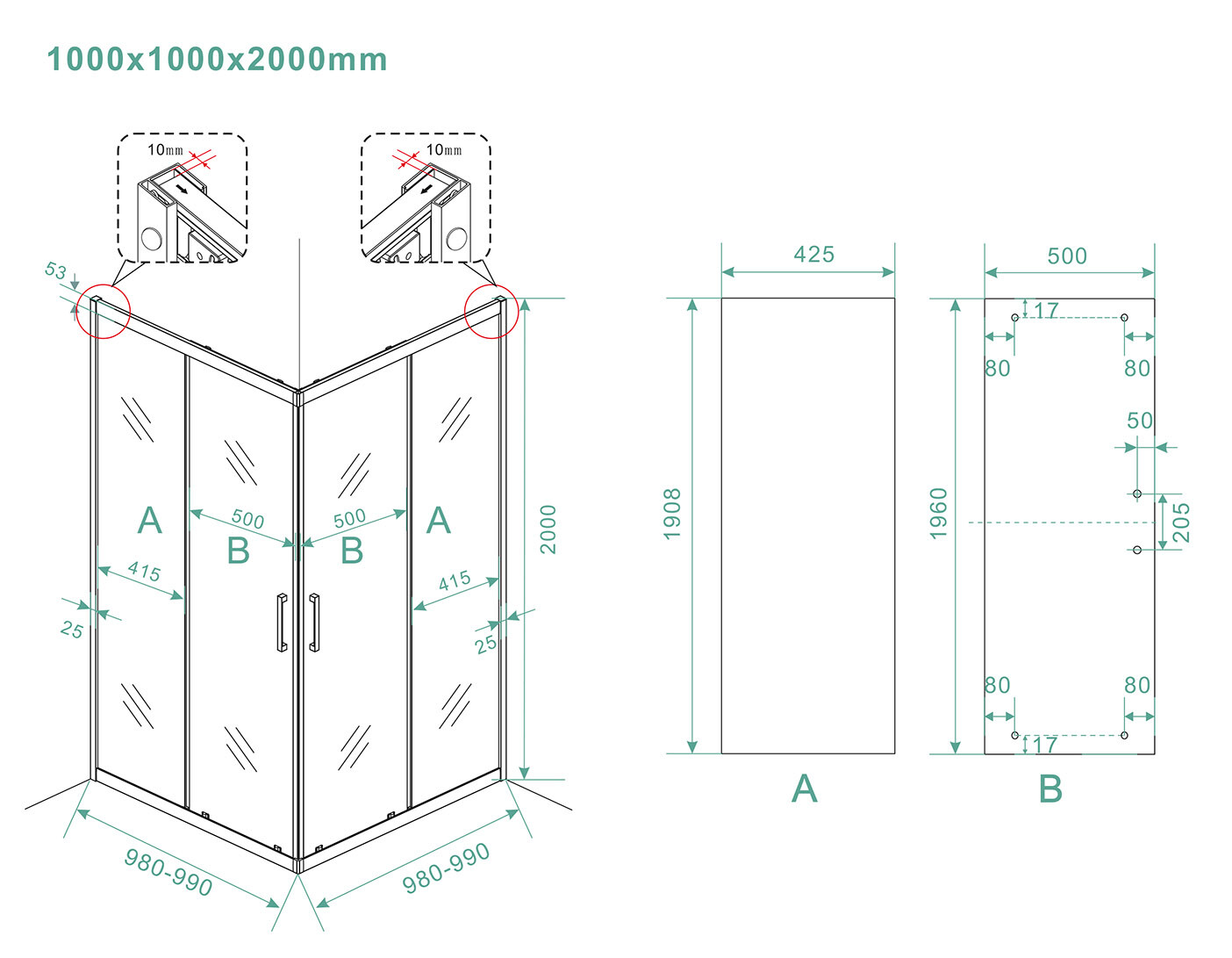 Kenmerken:- 1000 x 1000 x 2000 mm afmetingen