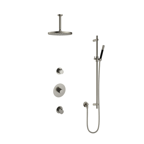 Hotbath Cobber IBS20 Regendoucheset inbouw - 15cm plafondarm - 30cm ronde hoofddouche - staafhanddouche - glijstang - nikkel geborsteld