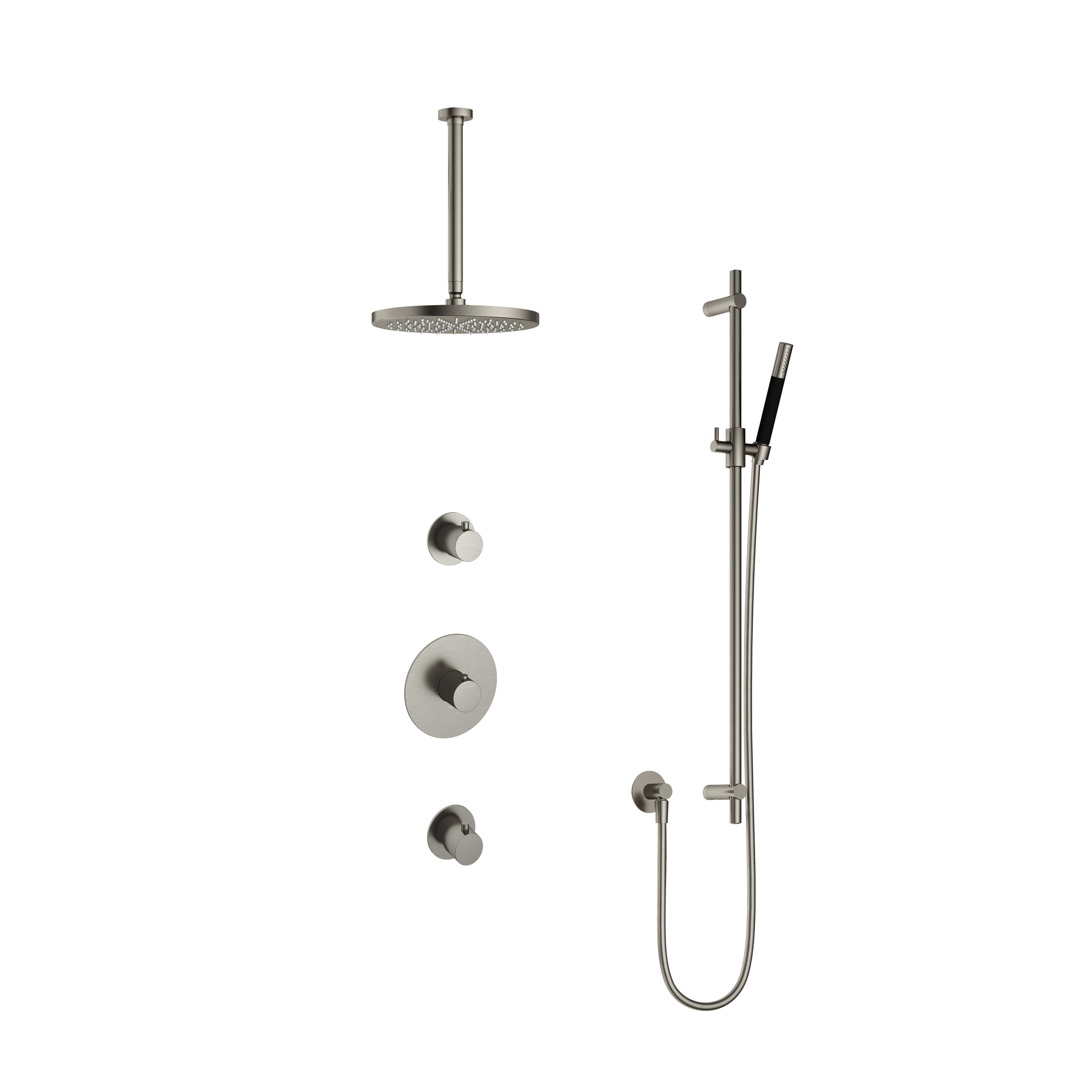 Hotbath Cobber IBS20 Regendoucheset inbouw - 30cm plafondarm - 30cm ronde hoofddouche - staafhanddouche - glijstang - nikkel geborsteld