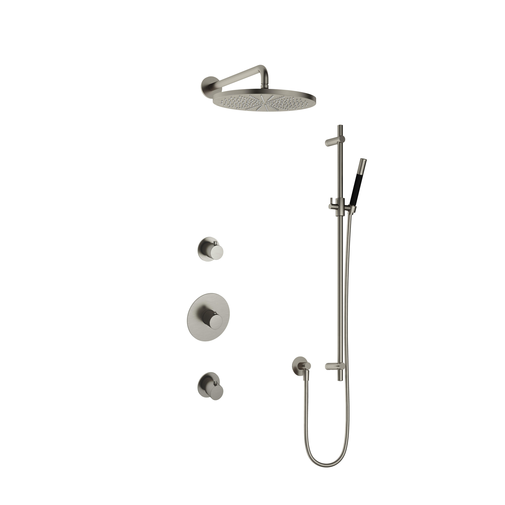 Hotbath Cobber IBS20 Regendoucheset inbouw - 35cm wandarm - 30cm ronde hoofddouche - staafhanddouche - glijstang - nikkel geborsteld