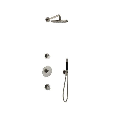 Hotbath Cobber IBS20 Regendoucheset inbouw - 35cm wandarm - 20cm ronde hoofddouche - staafhanddouche - nikkel geborsteld
