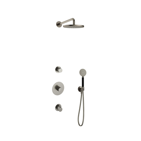 Hotbath Cobber IBS20 Regendoucheset inbouw - 35cm wandarm - 20cm ronde hoofddouche - 3 standen handdouche - nikkel geborsteld