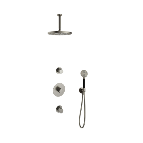 Hotbath Cobber IBS20 Regendoucheset inbouw - 15cm plafondarm - 30cm ronde hoofddouche - 3 standen handdouche - nikkel geborsteld