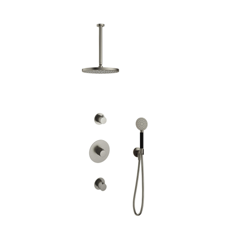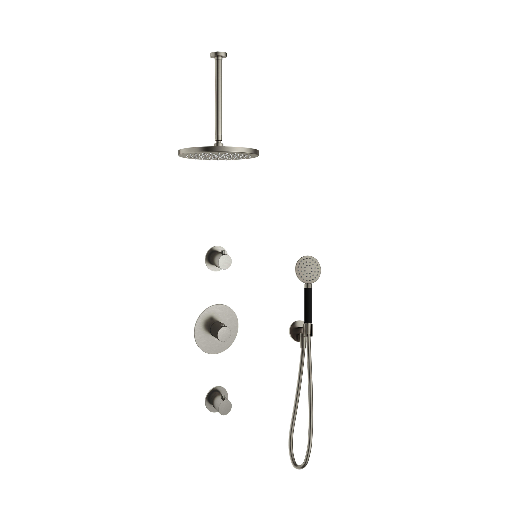 Hotbath Cobber IBS20 Regendoucheset inbouw - 30cm plafondarm - 30cm ronde hoofddouche - 3 standen handdouche - nikkel geborsteld