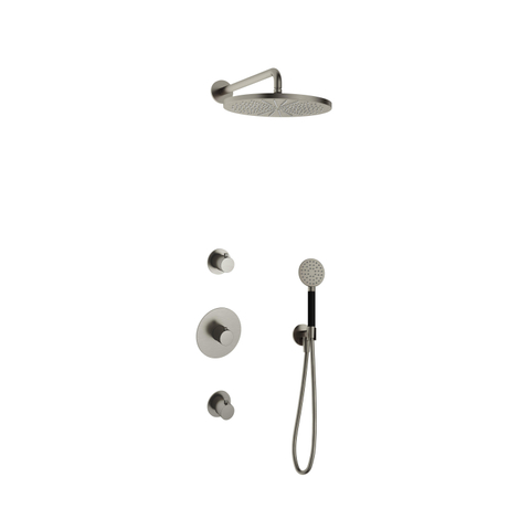 Hotbath Cobber IBS20 Regendoucheset inbouw - 35cm wandarm - 30cm ronde hoofddouche - 3 standen handdouche - nikkel geborsteld