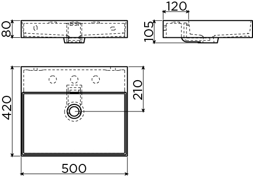 KraangatenDe wastafel heeft 3 voorbewerkte kraangaten zodat naar keuze 1-, 2- of 3-gats kranen gemonteerd kunnen worden. In de meegeleverde handleiding wordt uitgelegd hoe je een kraangat dient door te boren. Je kan echter ook kiezen om een wandkraan met deze wastafel te combineren. Dit maakt dat de wastafel nog beter te reinigen is.