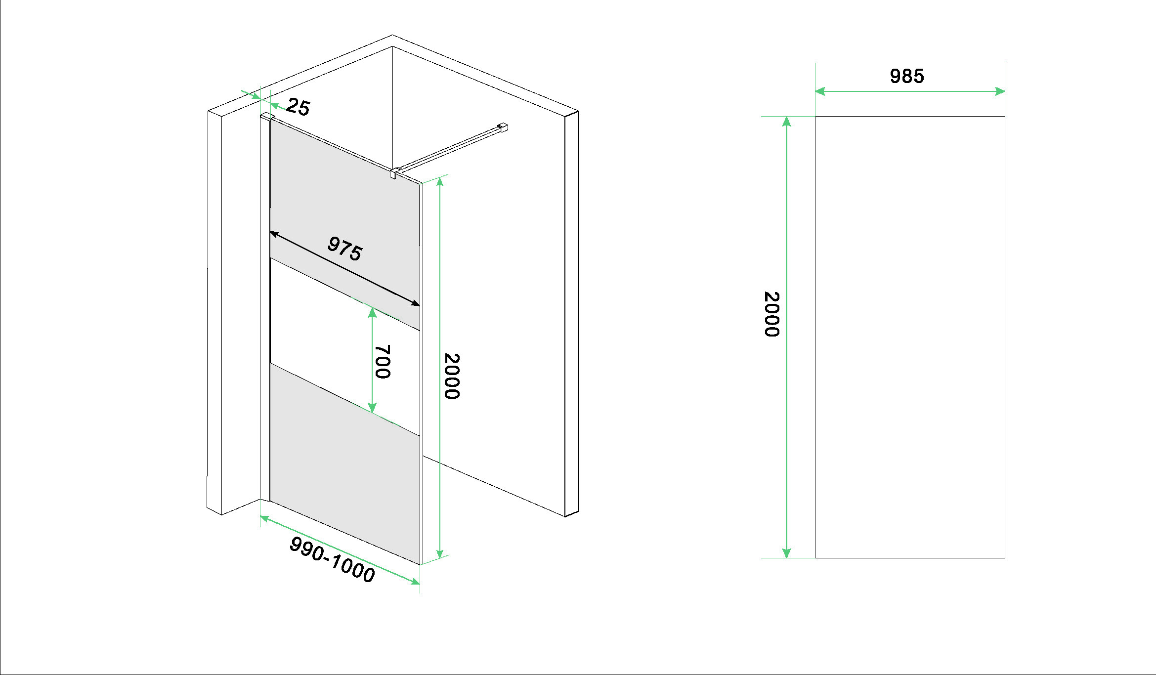 Wiesbaden Slim inloopdouche 100x200cm 8mm nano glas gedeeltelijk mat rookglas chroom