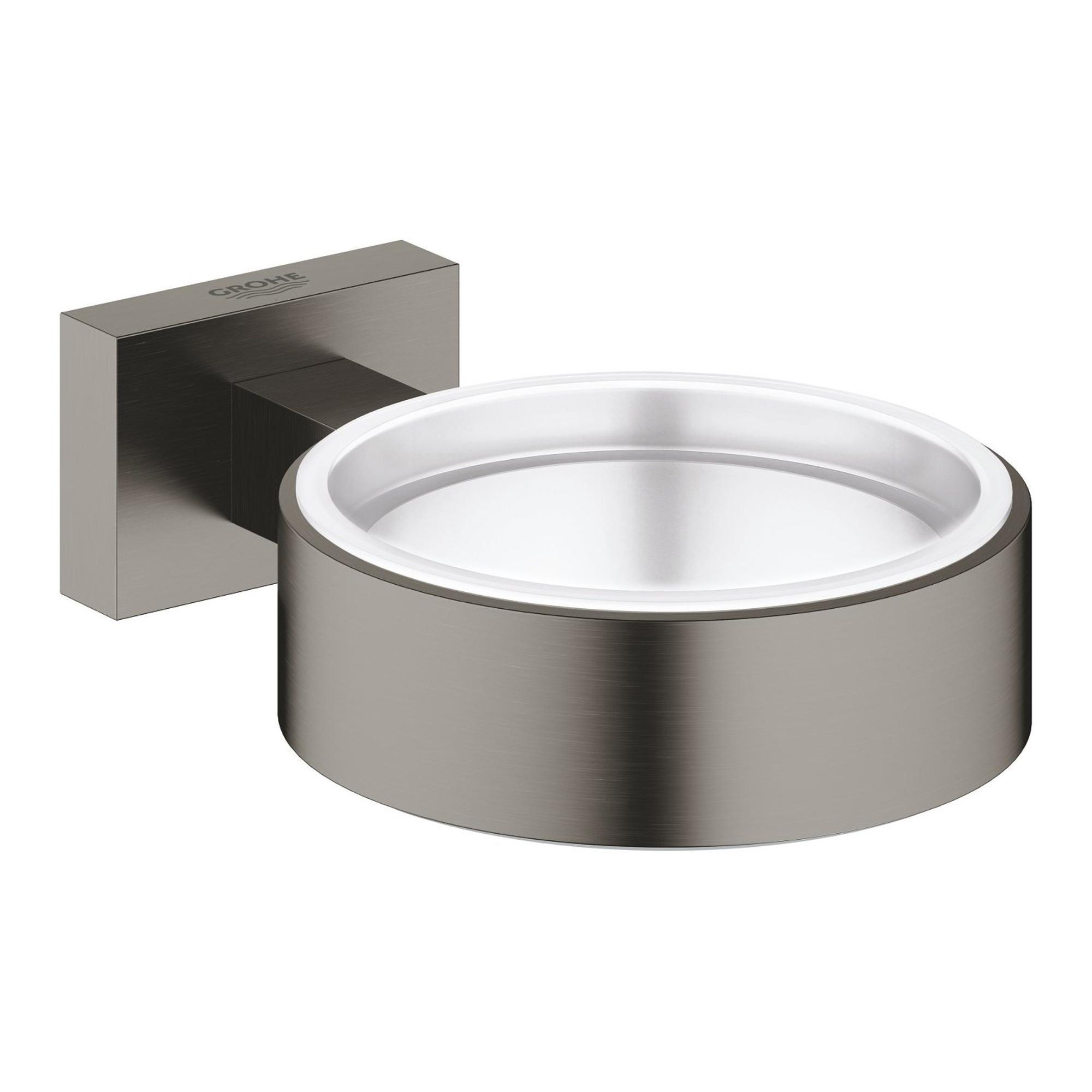 GROHE Essentials Cube Bekerhouder - 7.2x10.7x2.8cm - zonder glas - brushed hard graphite