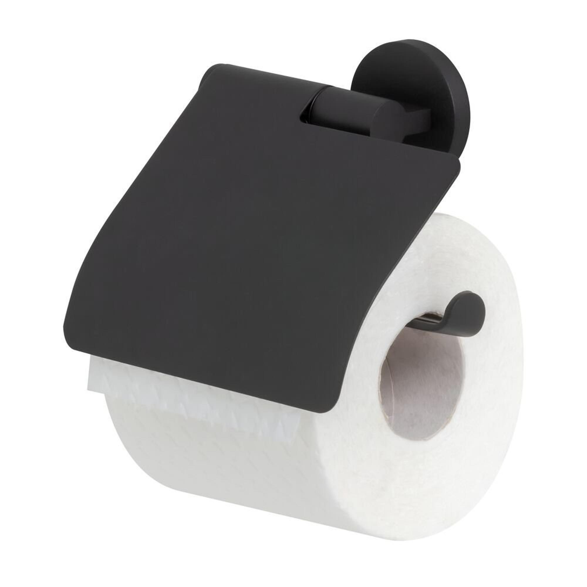 Tiger Noon Toiletrolhouder met klep Zwart 13.2x13.5x4.1cm