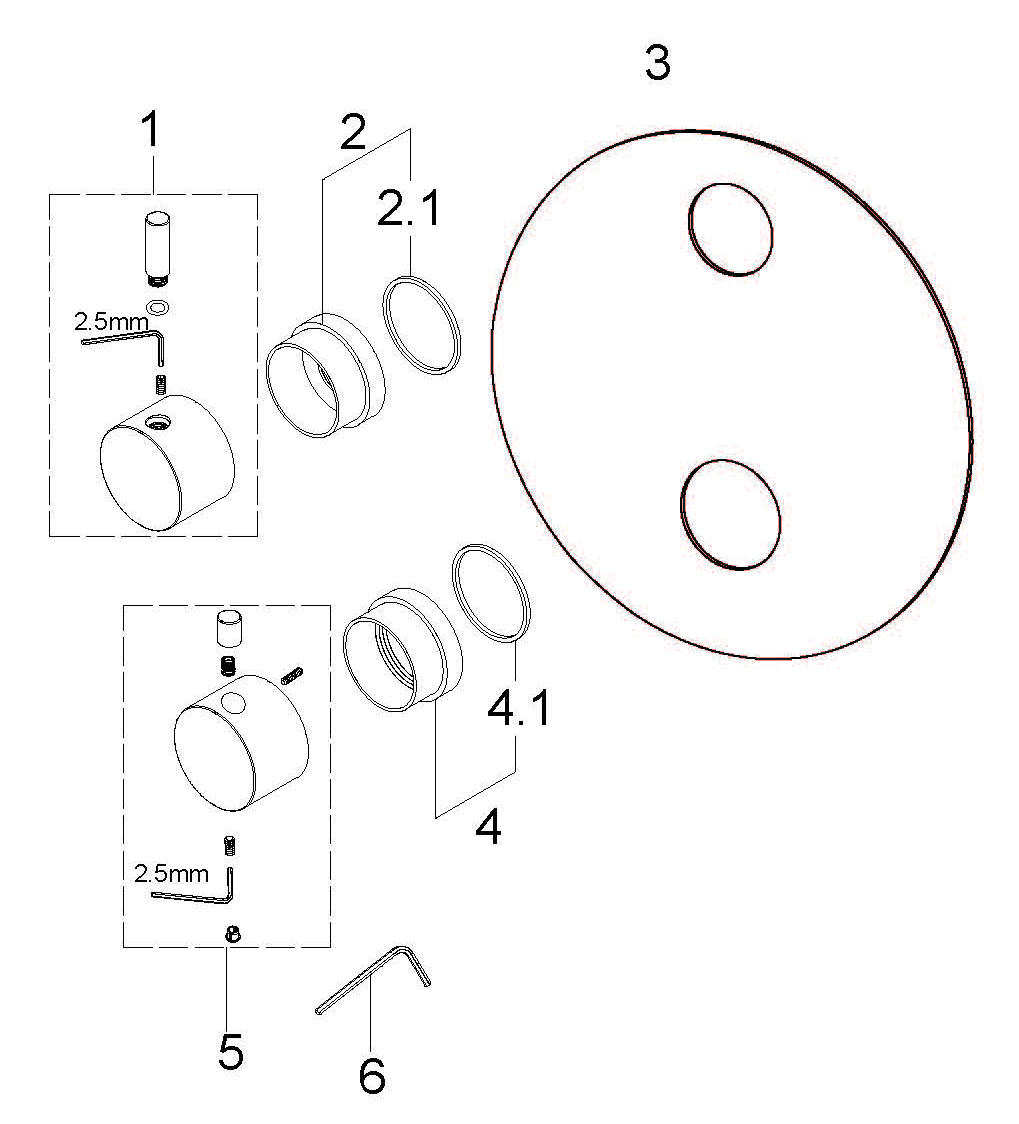 Wiesbaden Caral Rond afbouwdeel inbouwthermostaat 2 weg geborsteld messing