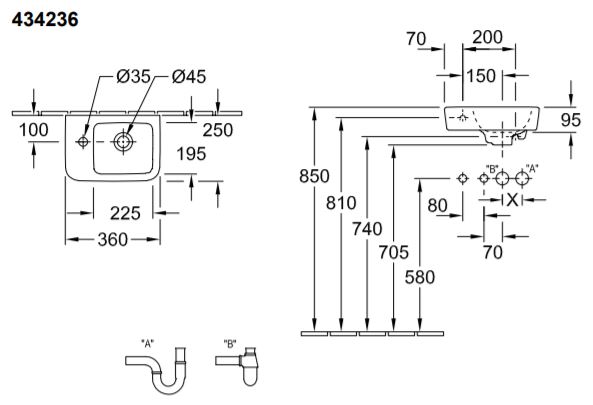 Villeroy & Boch O.novo fontein 1 kraangat links met overloop 36x25cm wit
