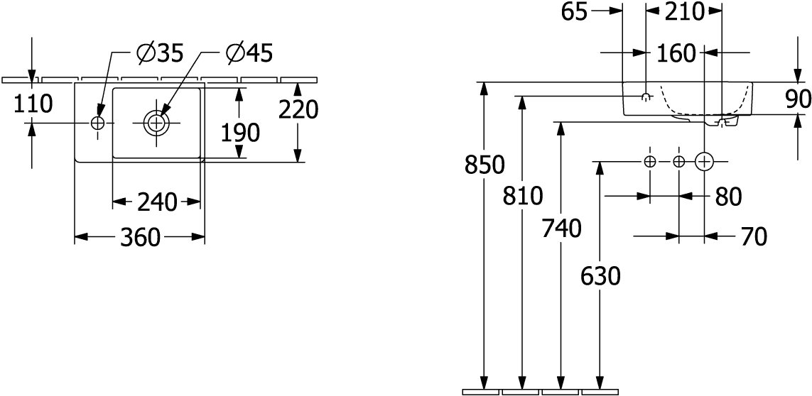 Villeroy & Boch Avento fontein 1 kraangat links zonder overloop 36x22cm ceramic+ wit