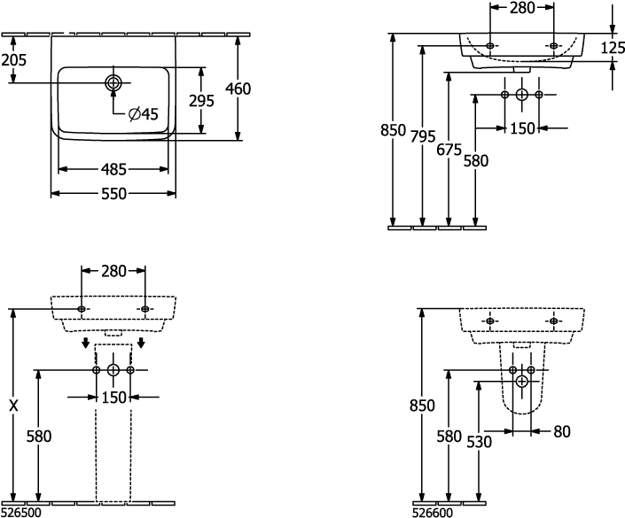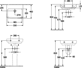 Villeroy & Boch O.novo wastafel 55x46cm zonder kraangat ceramic+ wit