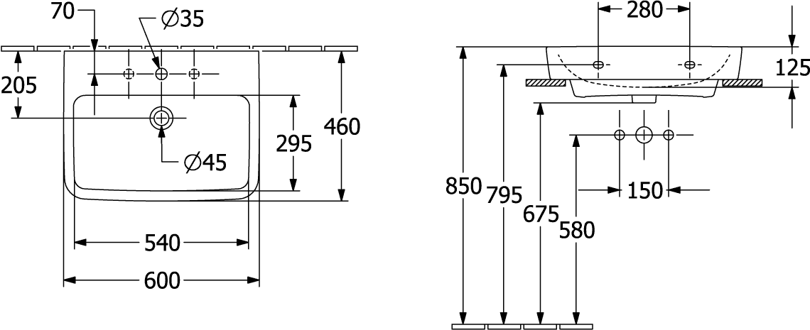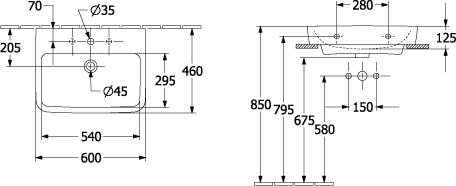 Villeroy & Boch O.novo wastafel onderzijde geslepen 60x46cm m.1 kraangat ceramic+ wit