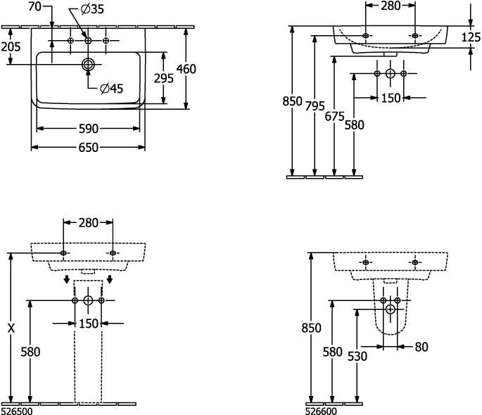 Villeroy & Boch O.novo wastafel 65x46cm ceramic+ wit