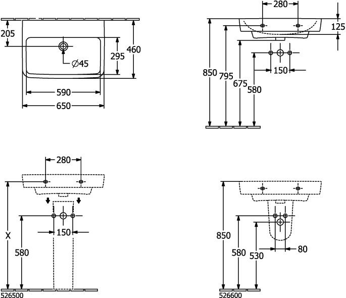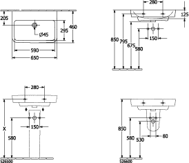 Villeroy & Boch O.novo wastafel 65x46cm zonder kraangat ceramic+ wit