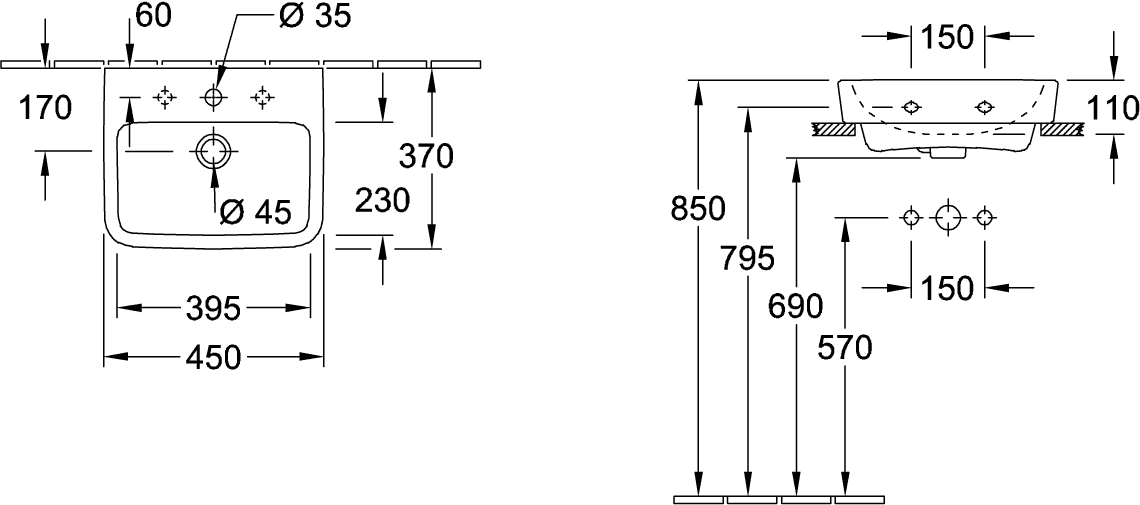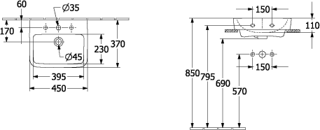 Villeroy & Boch O.novo fontein onderzijde geslepen 45x37cm m.1 kraangat ceramic+ wit