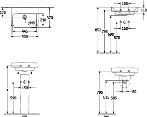 Villeroy & Boch O.novo fontein 50x37cm zonder kraangat zonder overloop ceramic+ wit