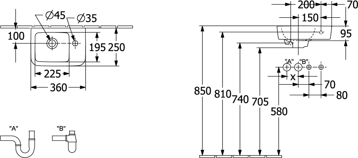 Villeroy & Boch O.novo fontein 36X25cm 1 kraangat rechts zonder overloop wit