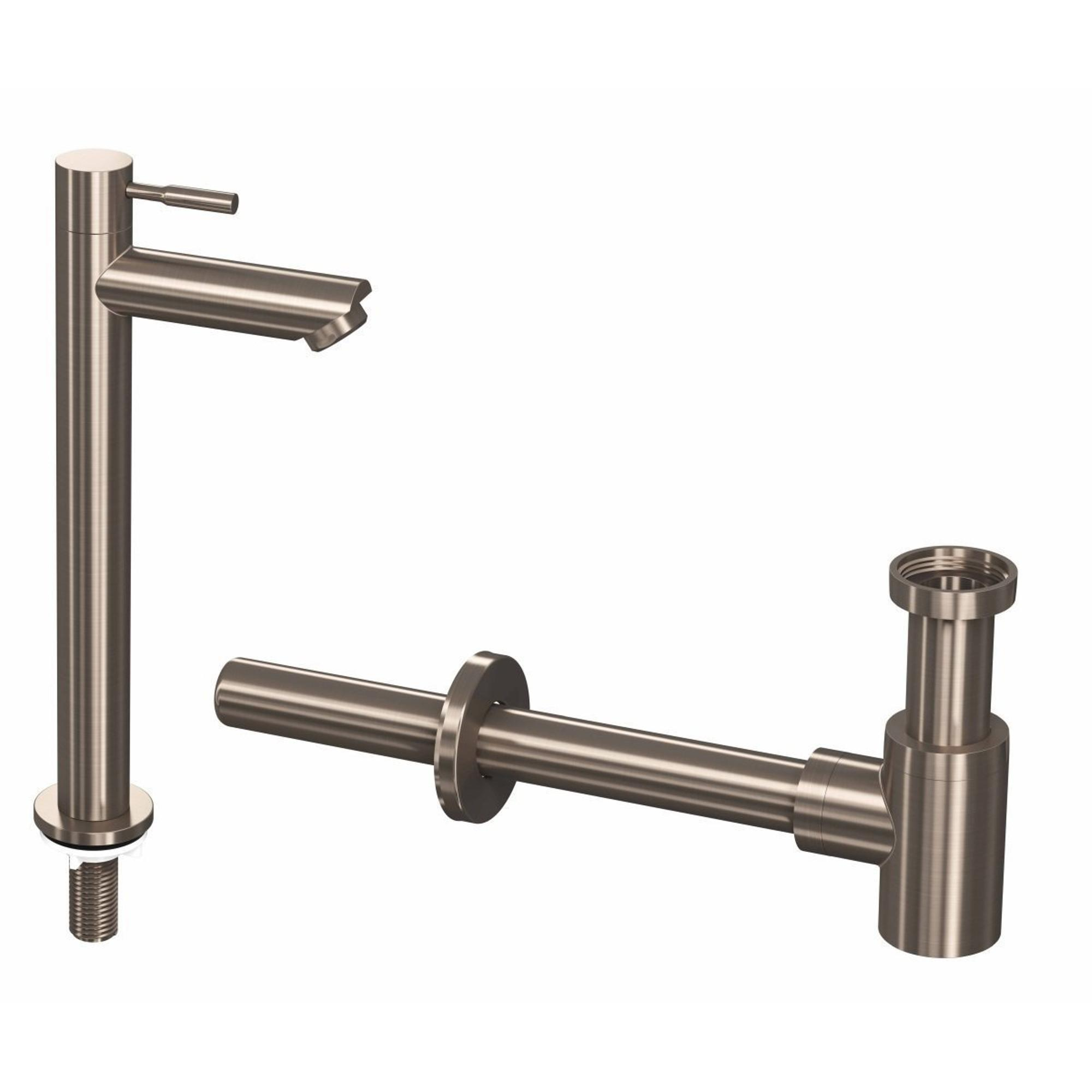 INK 2B Fonteinkraanset - staande Fonteinkraan - hoog - designSifon - nikkel geborsteld