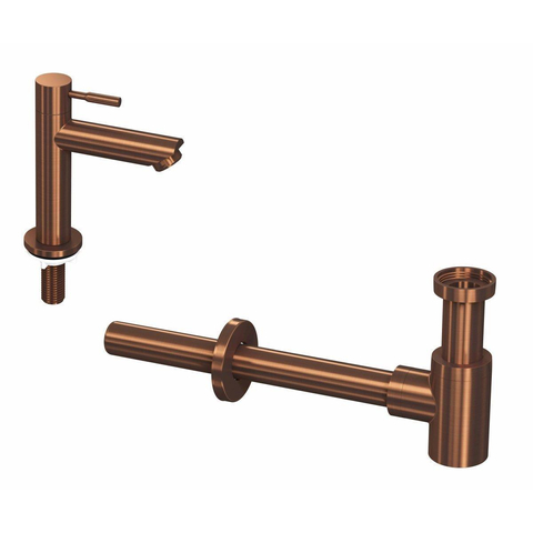 De INK 1B Fonteinkraanset onderscheidt zich door zijn stijlvolle uitstraling. Het mat roségouden afwerking geeft een luxe en trendy touch aan je badkamer. De fonteinkraan en design sifon zijn ontworpen met oog voor detail, waardoor elk element bijdraagt aan de elegante esthetiek van het geheel. Deze set is ideaal voor wie op zoek is naar een verfijnde en eigentijdse toevoeging aan hun badkamerinterieur.