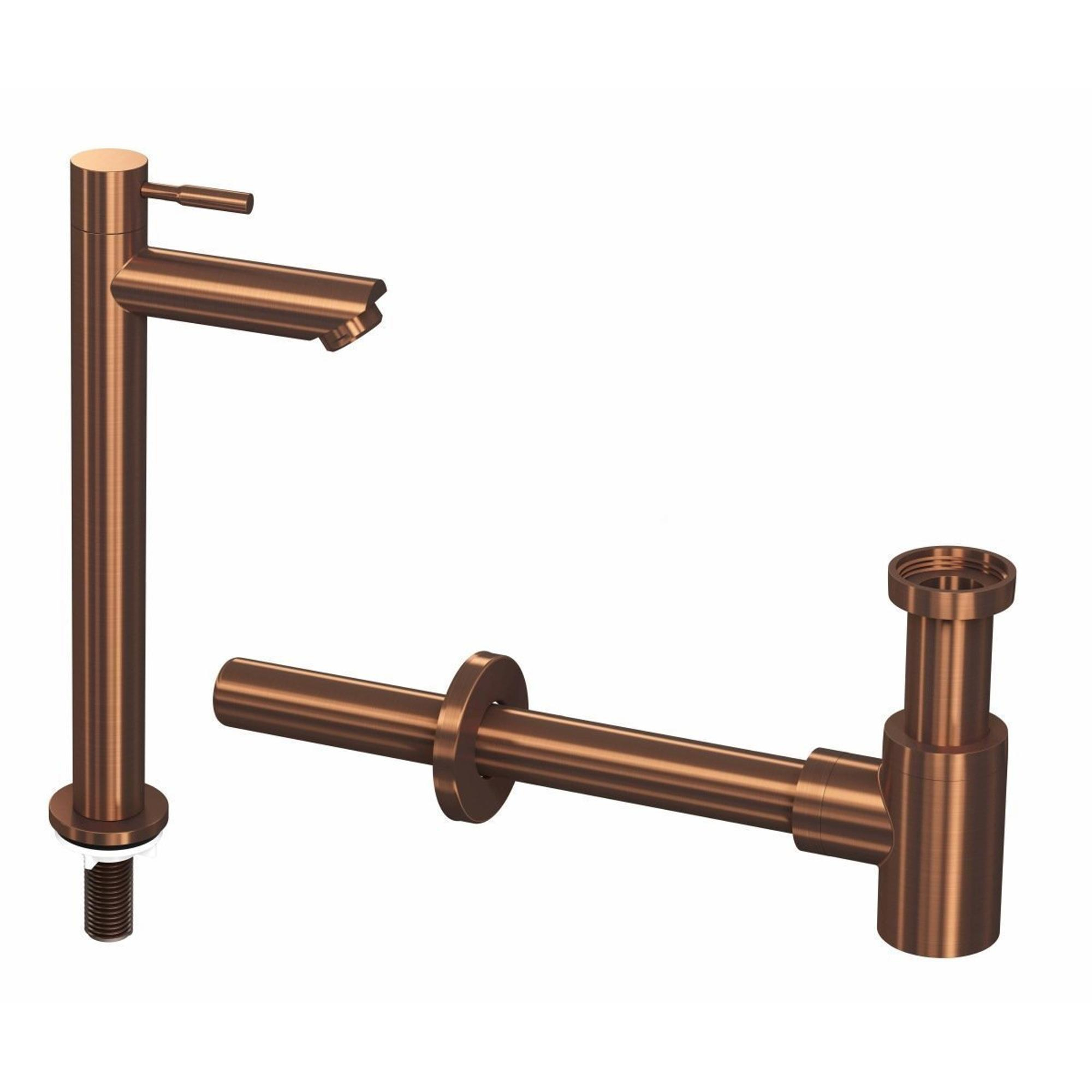 INK 2B Fonteinkraanset - staande Fonteinkraan - hoog - designSifon - Mat rose goud