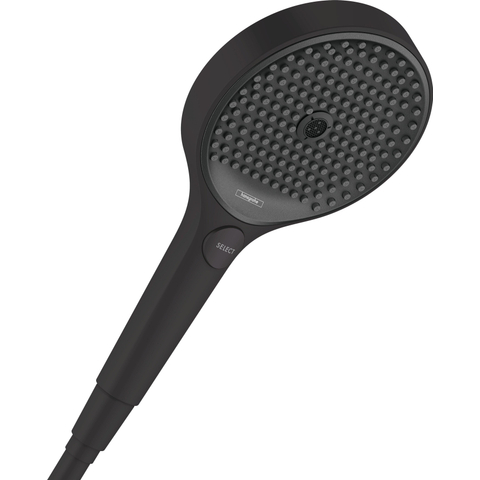 De hansgrohe Rainfinity handdouche 130 3jet EcoSmart in mat zwart zorgt met zijn combinatie van mat zwart en de 130 mm grote ronde antracietkleurige straalplaat voor moderniteit, comfort en een lager waterverbruik. Daarbij is de hoogwaardige mat zwarte finish bijzonder duurzaam en blijft lang mooi, net als de duurzame metalen straalplaat. Samen met andere producten van de lijn Rainfinity creëren designliefhebbers met deze kleurige douchekop hun eigen buitengewone comfortabele badkamers. De drie verschillende straalsoorten zorgen voor doucheplezier: De zijdezachte straal PowderRain hult uw lichaam in microfijne waterparels De Intense PowderRain met gebundelde waterstraal, waarmee u shampoo moeiteloos kunt uitspoelen. En MonoRain, de pure en precieze straal, perfect voor Kneipp-begietingen. De flexibele begrenzing van de doorstroomhoeveelheid - onafhankelijk van de waterdruk - bespaart tot 40% water. Dat is goed voor uw portemonnee en het milieu (EcoSmart).