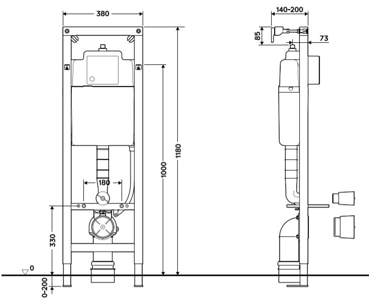 - voorgemonteerd WC element in zelfdragend frame voorzien van blauwe poedercoating
