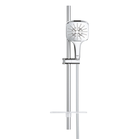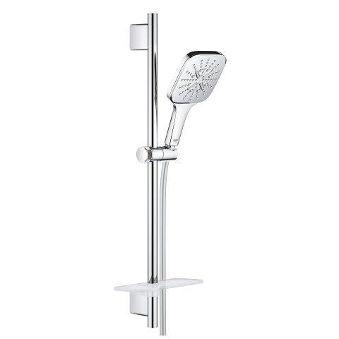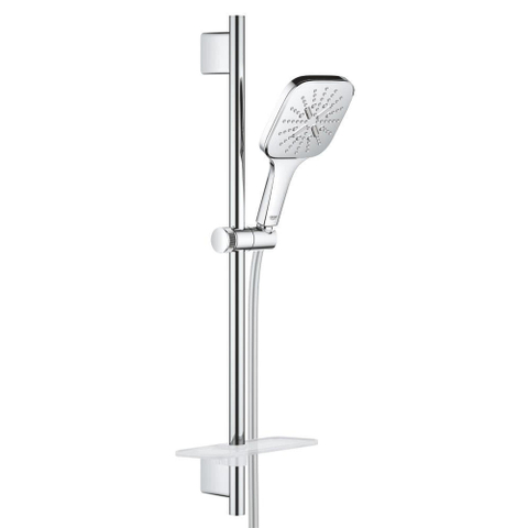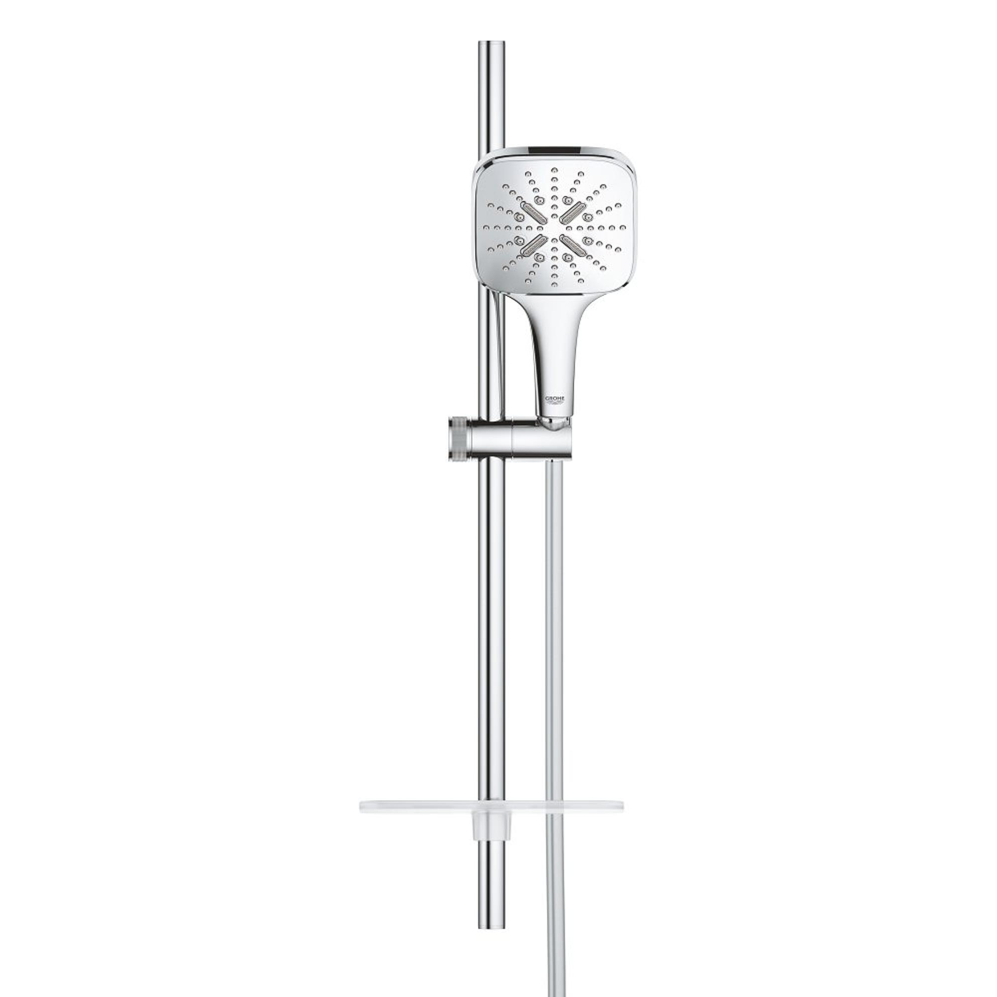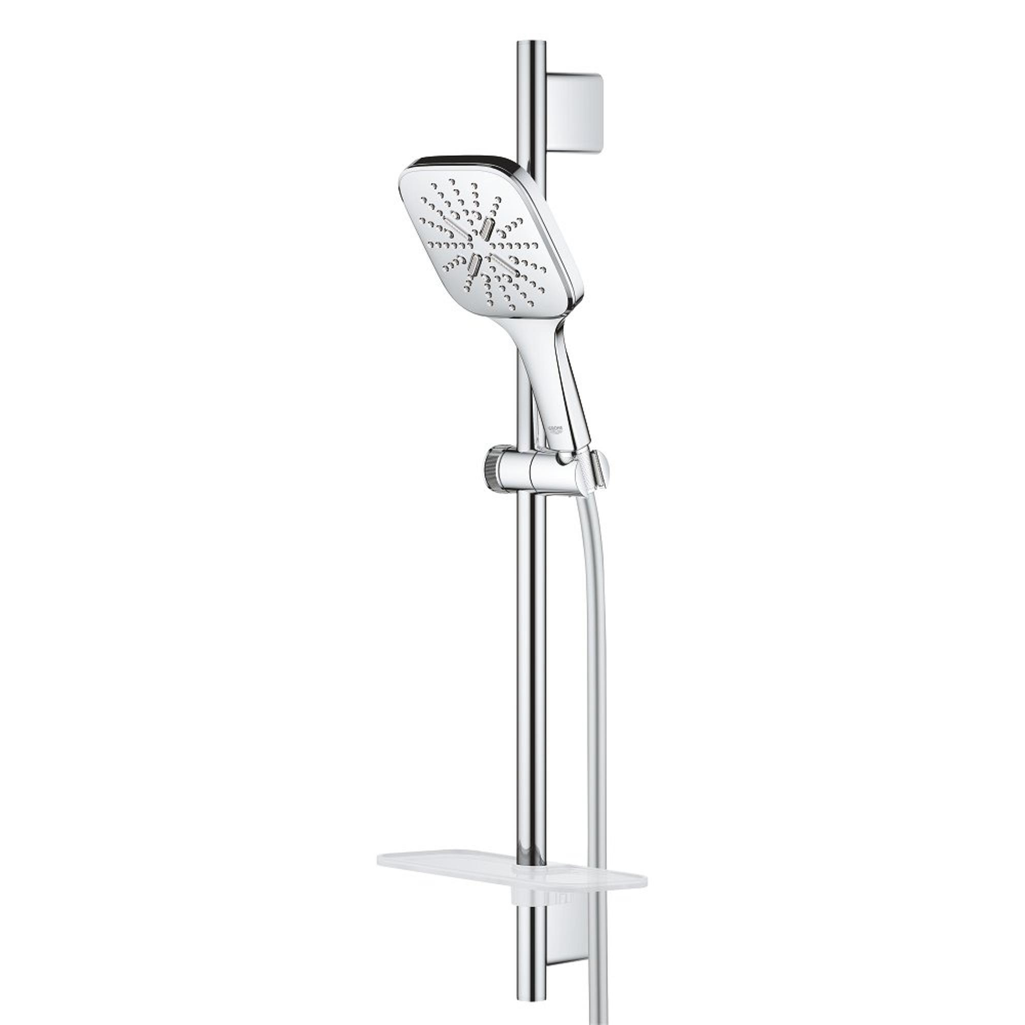 GROHE Rainshower Smartactive 130 Cube Glijstangset - 60cm - vierkante handdouche - 3 straalsoorten - gladde doucheslang - met zeepschaal - chroom