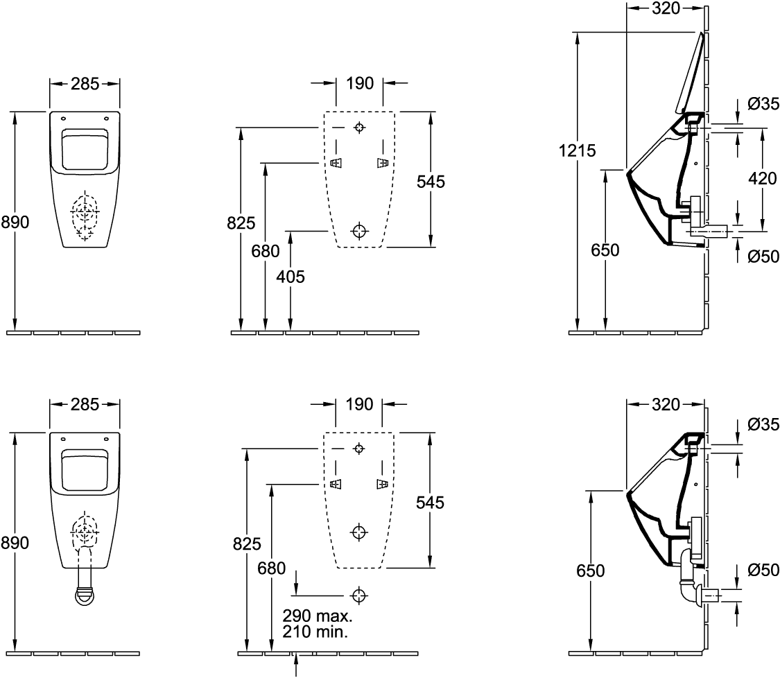 Villeroy & Boch Venticello urinoir met achterinlaat met deksel 28.5x54.5x31.5cm ceramic+ graphite