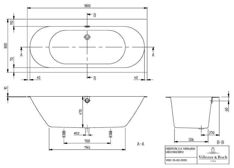 Villeroy & Boch Oberon 2.0 Inbouwbad
