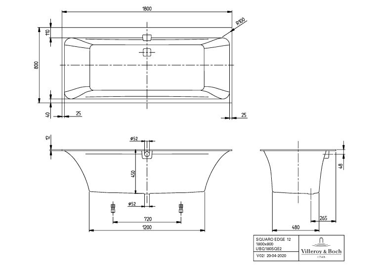 Villeroy & Boch Squaro edge 12 Inbouwbad
