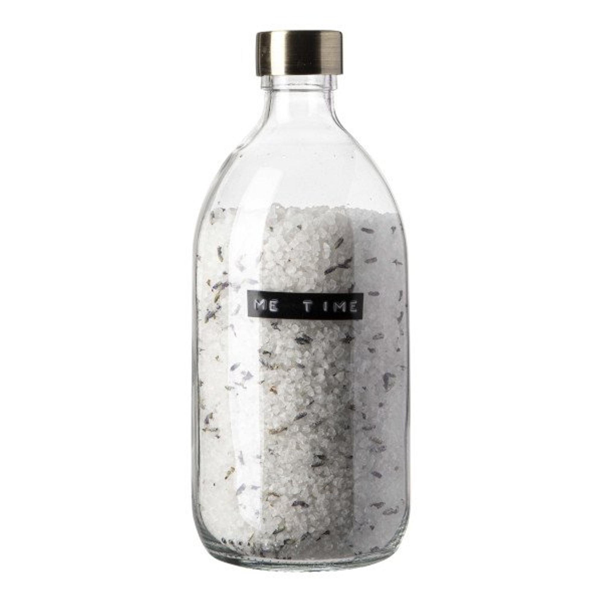 Wellmark Badzout helder glas messing dop 500ml Lavendel tekst ME TIME