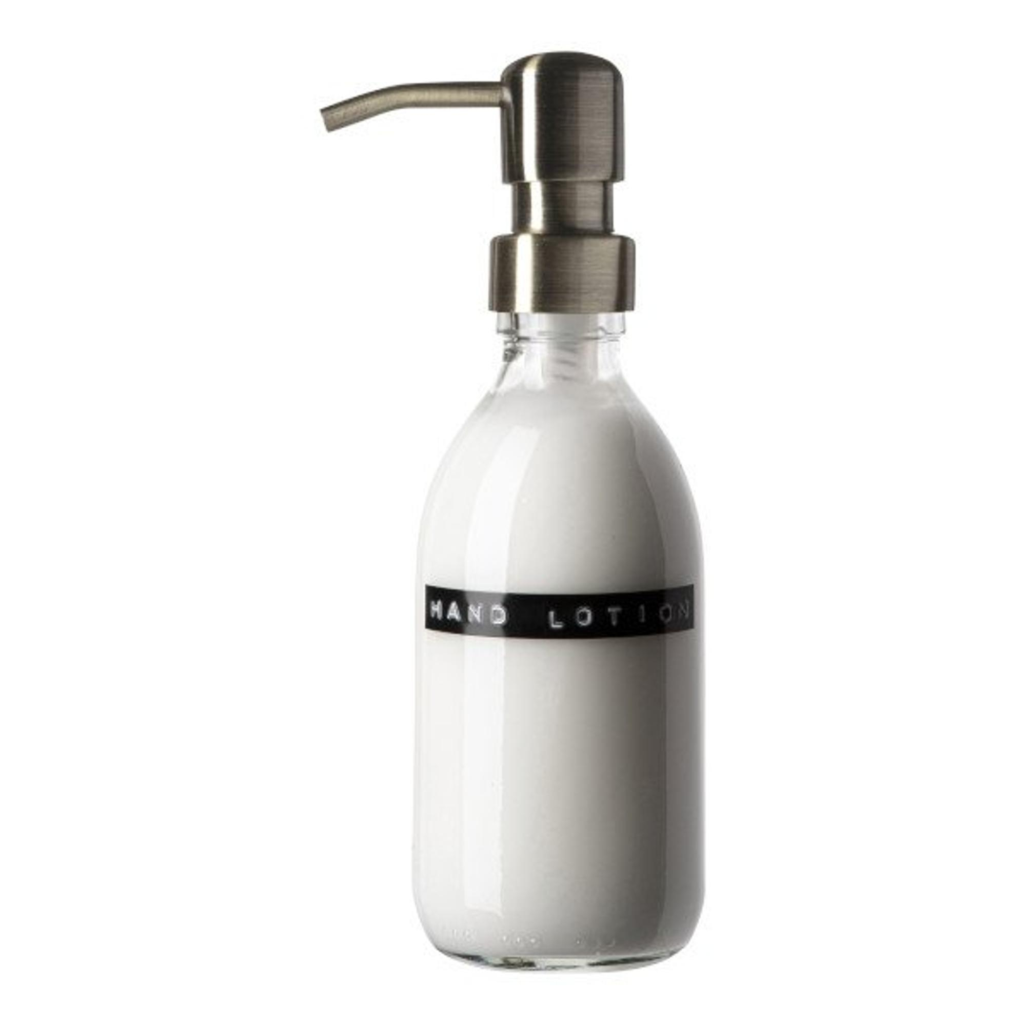 Wellmark Handcreme helder glas messing pomp 250ml tekst HAND LOTION