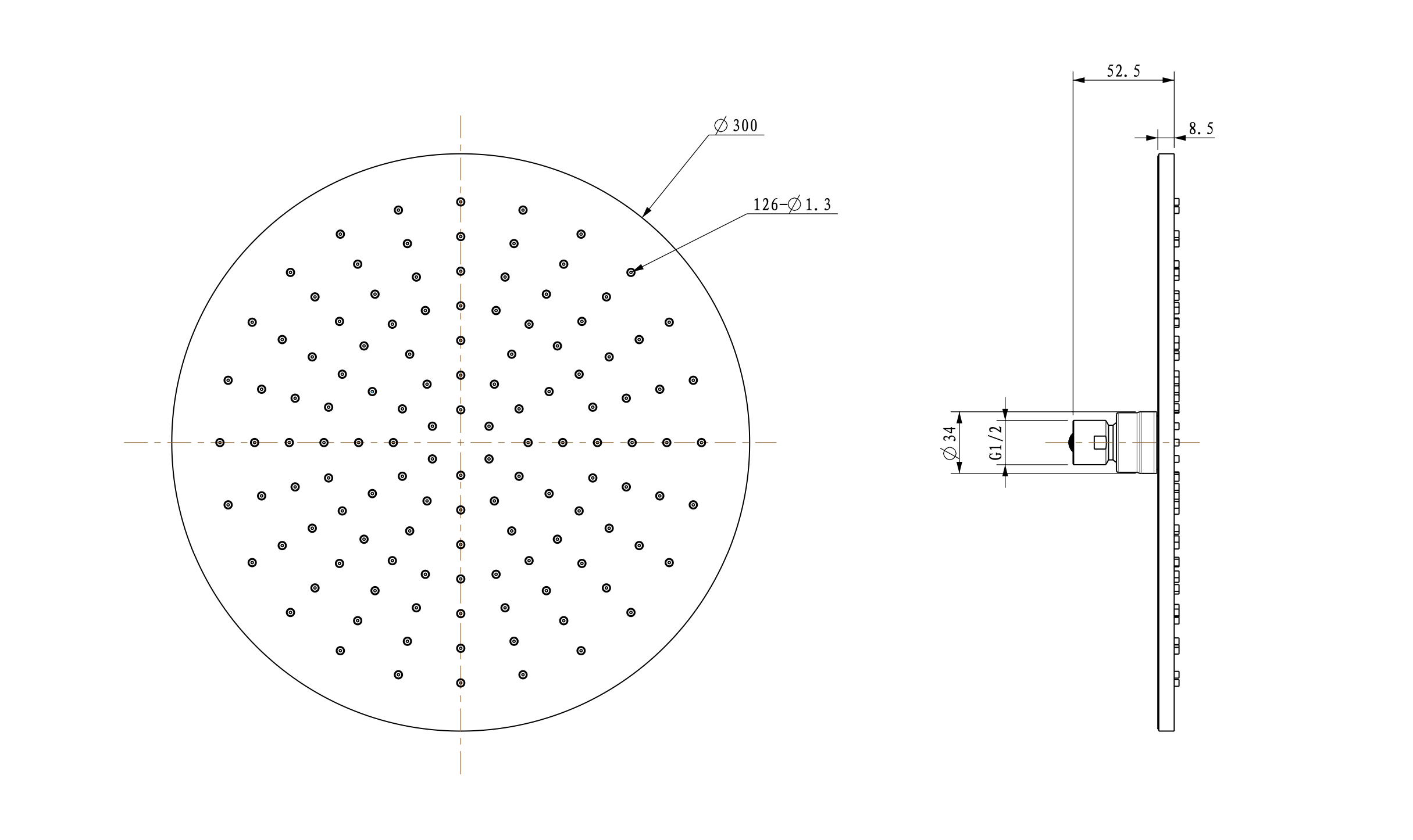 | Breedte douchekop | 30 cm |