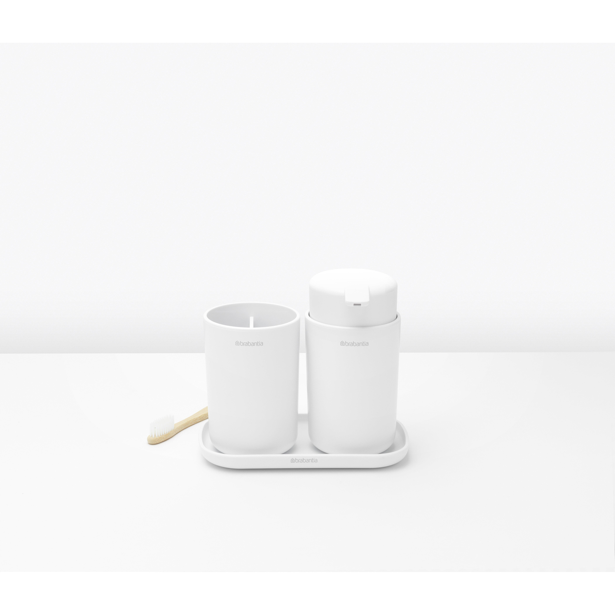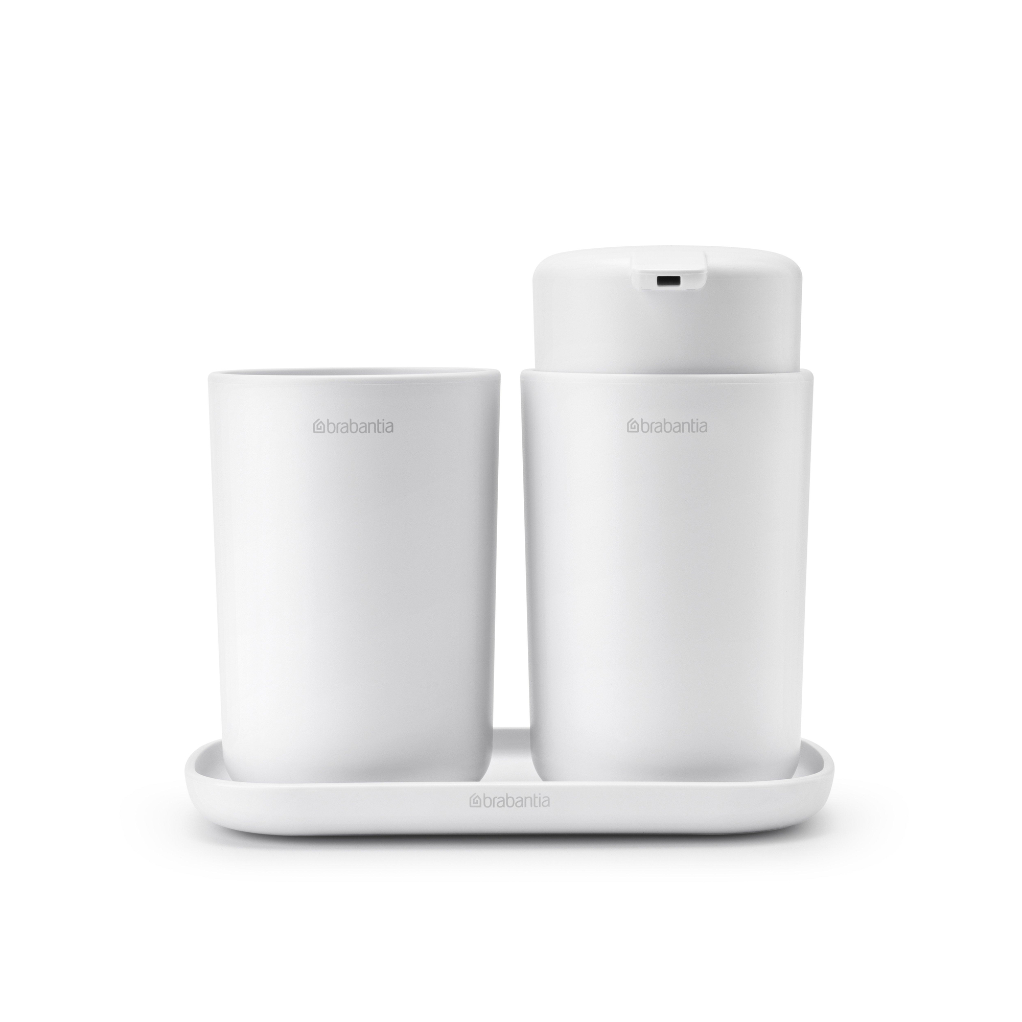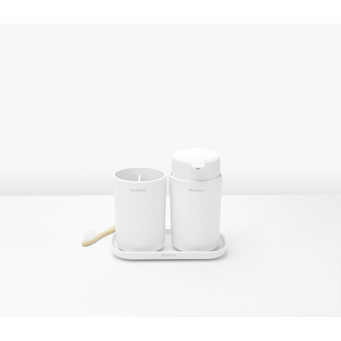 Brabantia ReNew Badkameraccessoires - set van 3 - Zeeppomp - Tandenborstelhouder - Schaal - wit