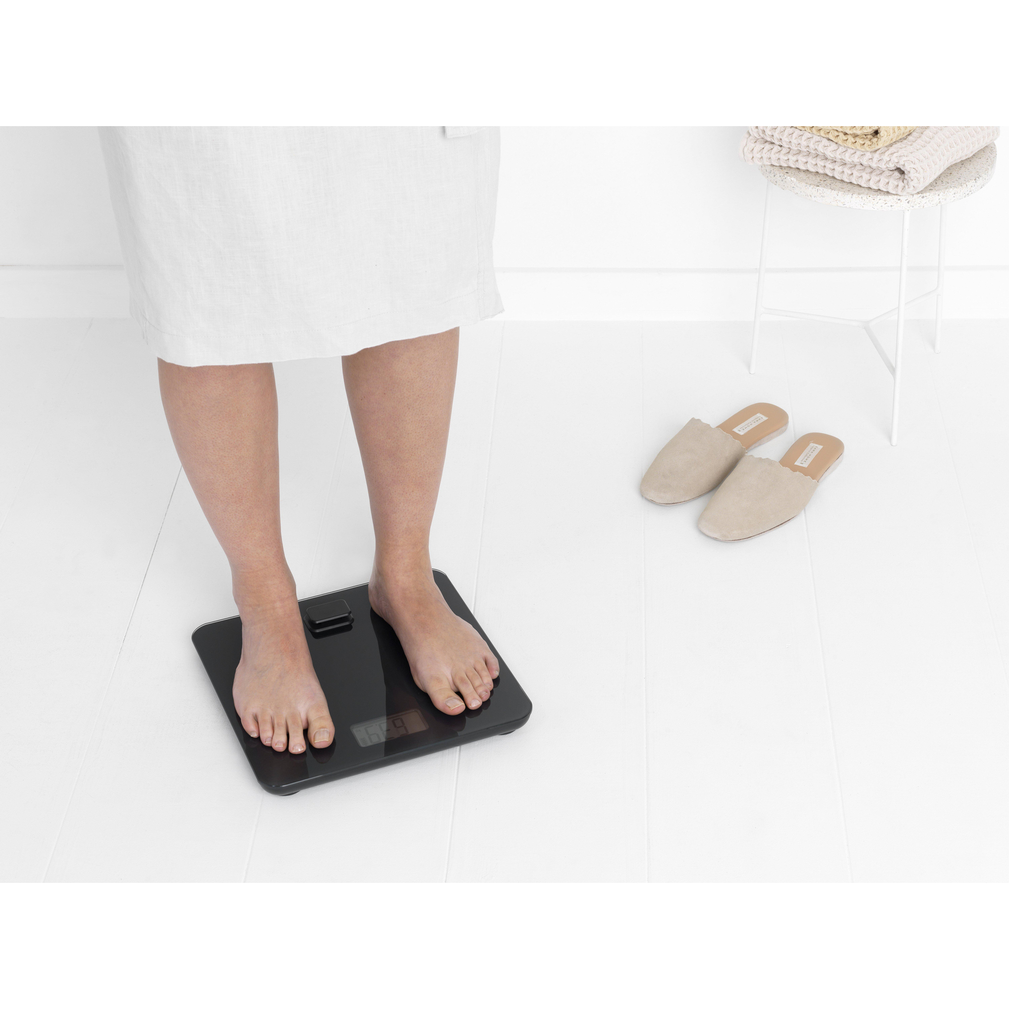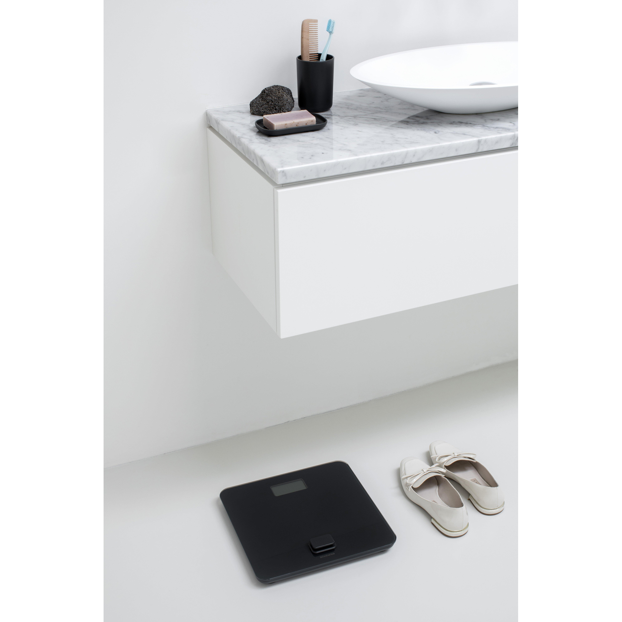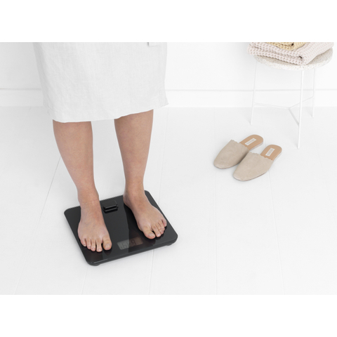 De Brabantia ReNew Personenweegschaal straalt elegantie uit in zijn eenvoud. Het donker grijze design geeft een vleugje luxe aan jouw badkamerinterieur, terwijl de slanke vormgeving en hoogwaardige materialen getuigen van vakmanschap en kwaliteit. Deze weegschaal is niet alleen een functioneel hulpmiddel, maar ook een decoratief element dat jouw badkamer transformeert tot een stijlvolle en verfijnde ruimte.