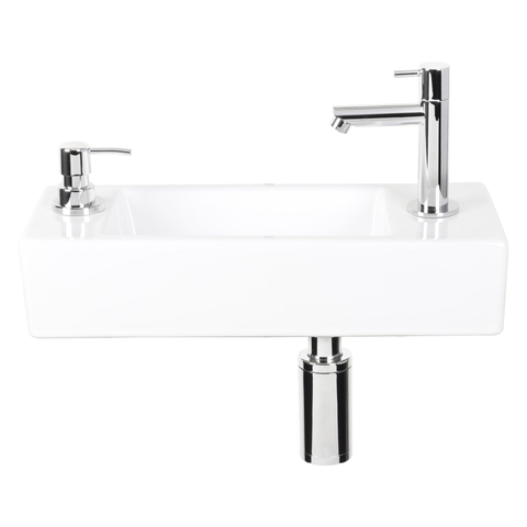 Differnz Sapon fonteinset - 42x18.5x9cm - Rechthoek - 1 kraangat - warm/koud water - Chroom - Keramiek Wit