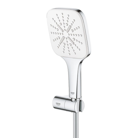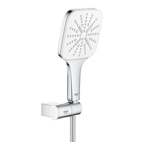 GROHE Rainshower SmartActive 130 Cube Handdoucheset - 3 straalsoorten - vierkant - met houder - verstelbaar - gladde slang - 150cm - chroom/moon white
