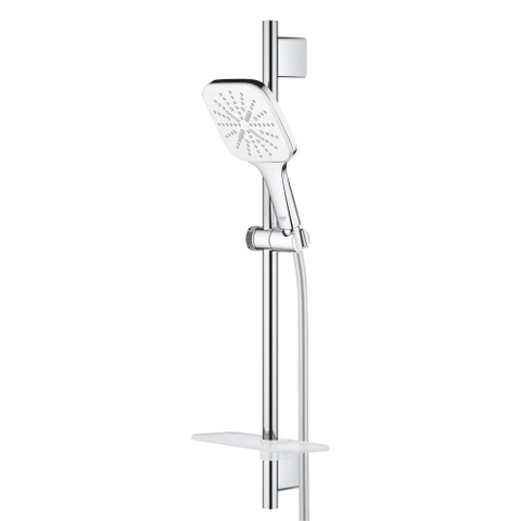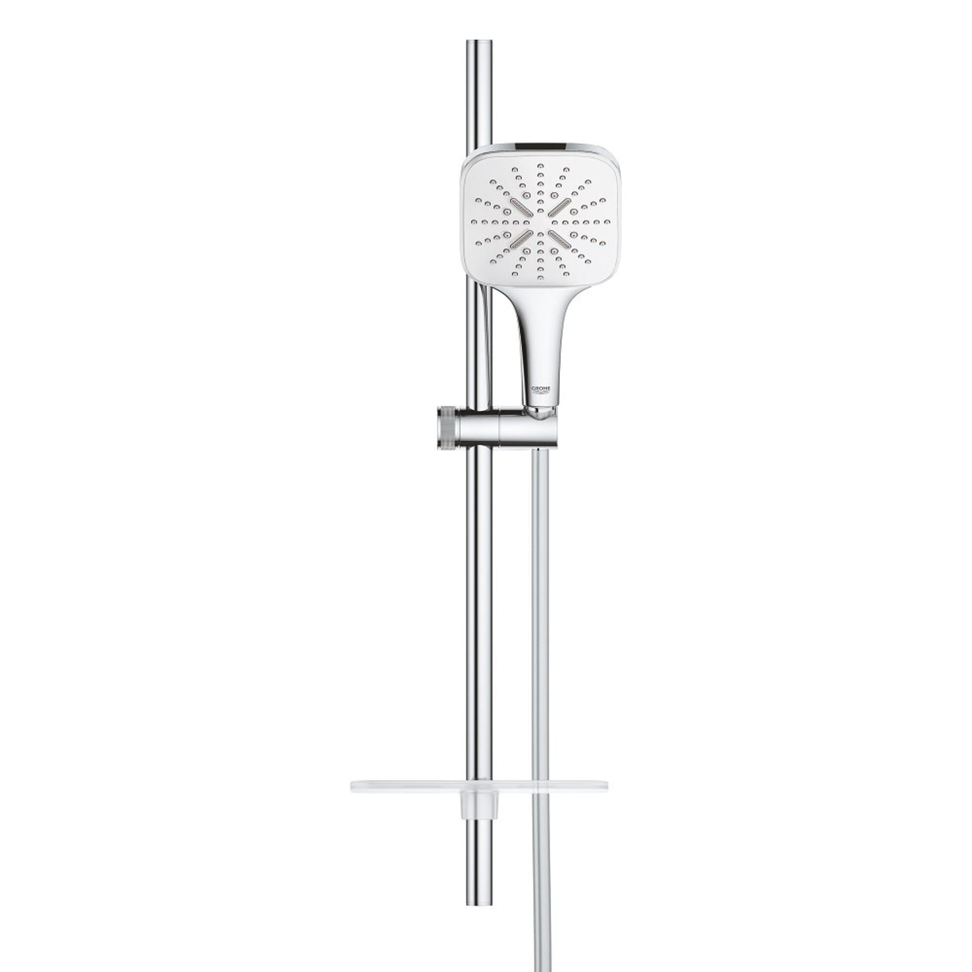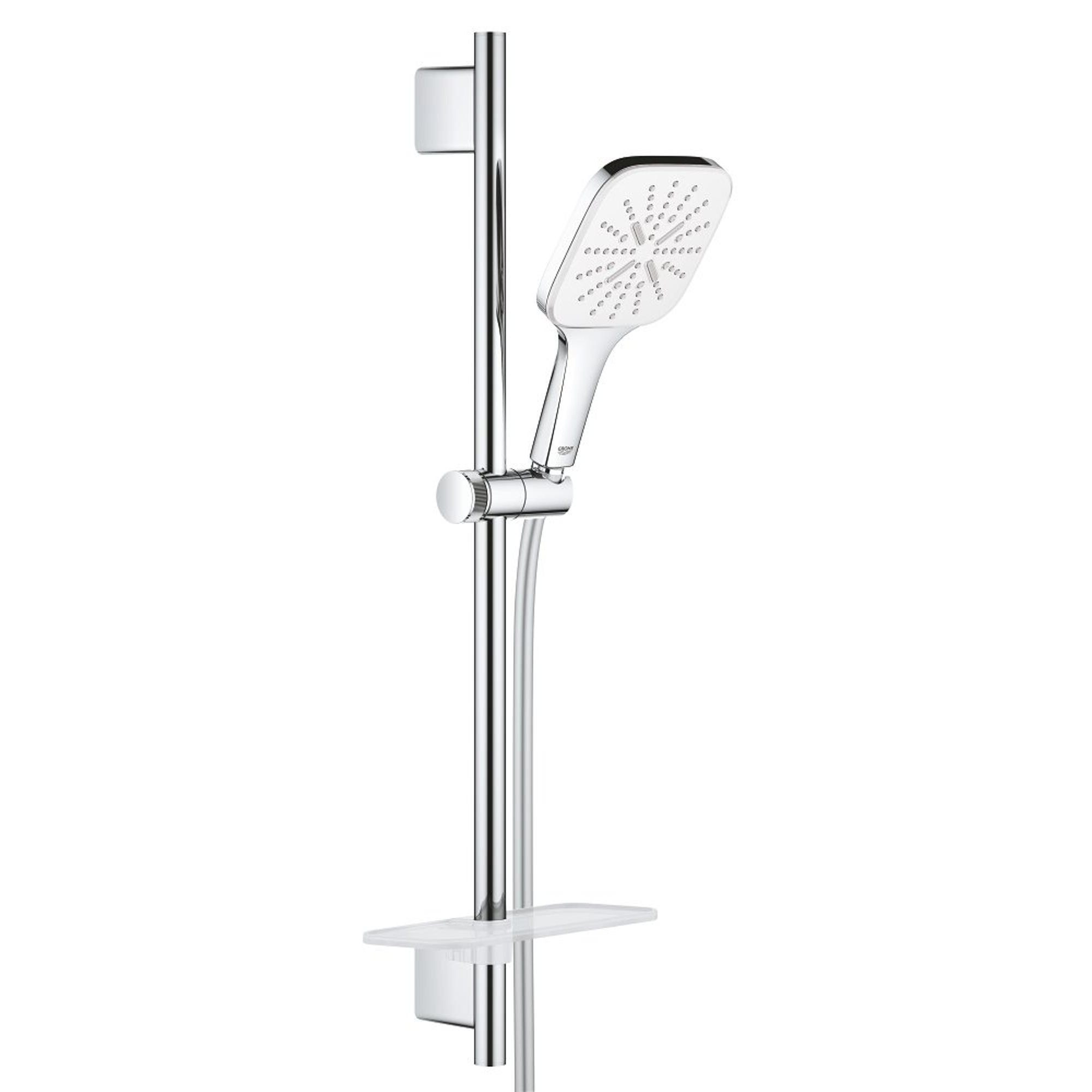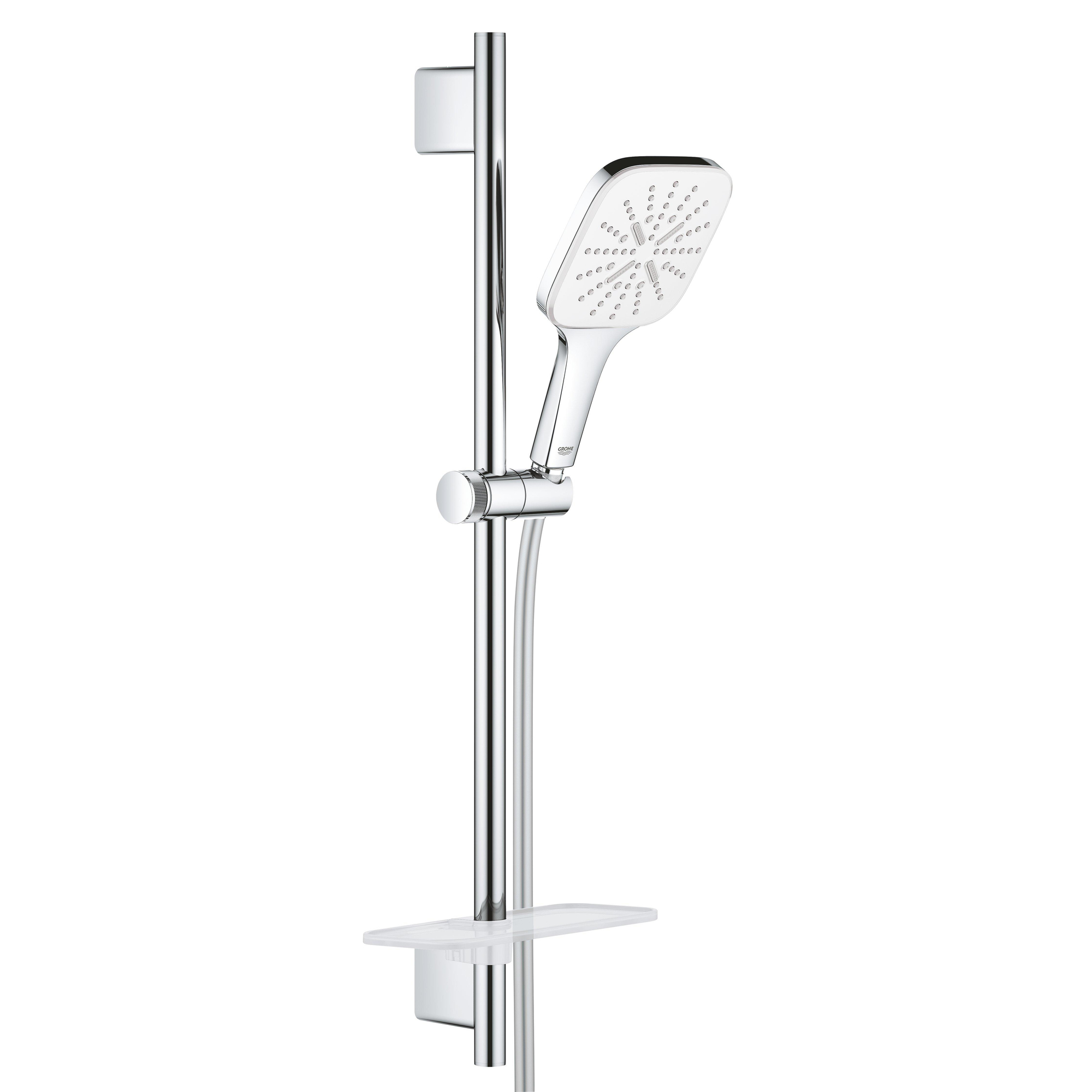 GROHE Rainshower SmartActive 130 Cube Glijstangset - 60cm - vierkante handdouche - 3 straalsoorten - gladde doucheslang - met zeepschaal - chroom/moon white