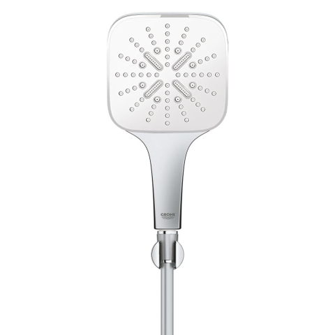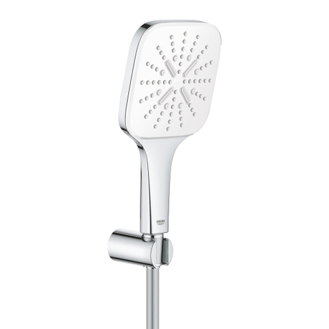 GROHE Rainshower SmartActive 130 Cube Handdoucheset - 3 straalsoorten - vierkant - met houder - gladde slang - 150cm - chroom/moon white