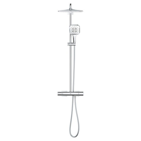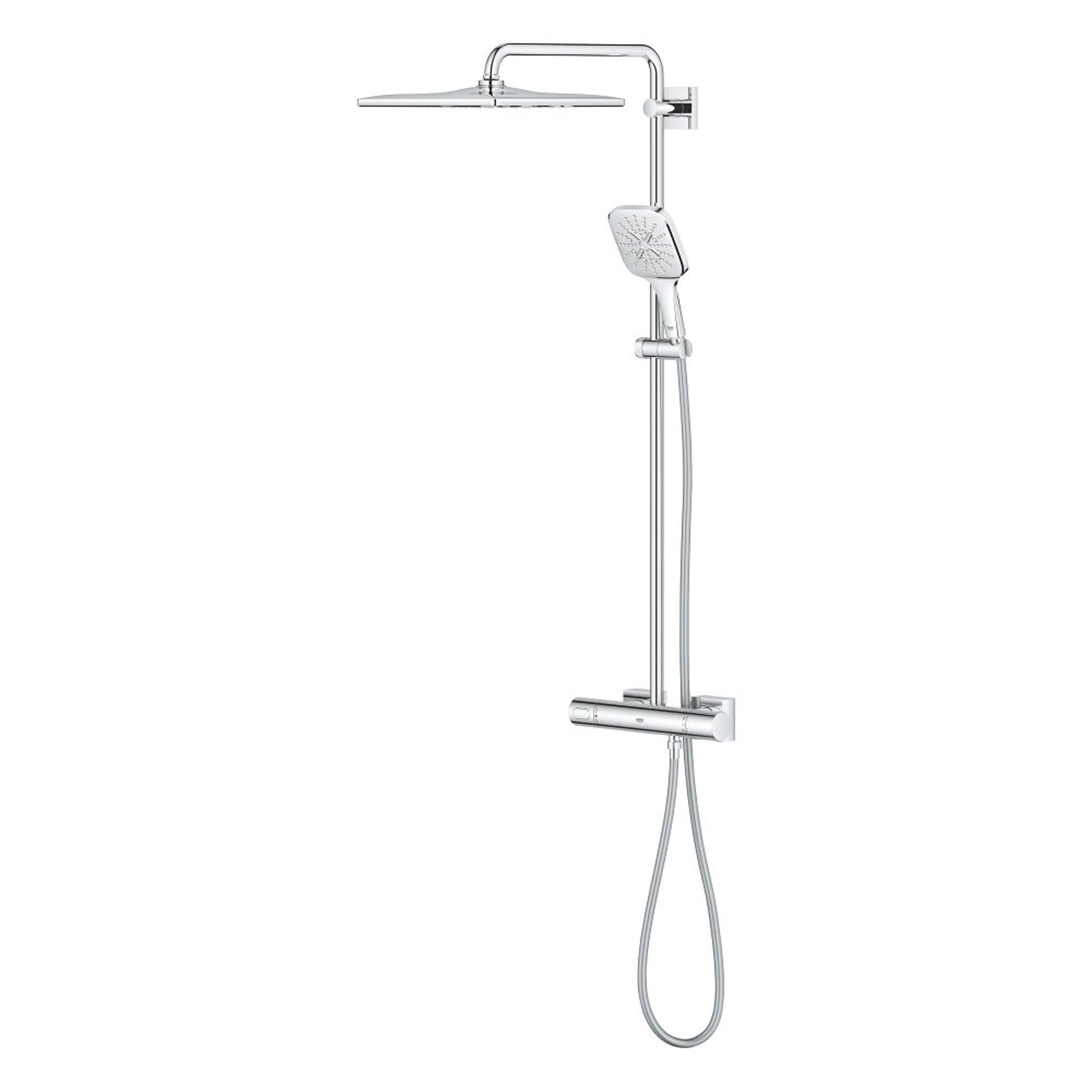 GROHE Rainshower 310 SmartActive Cube douchesysteem – altijd voorzien van een constante temperatuur Met een Rainshower systeem creëer je thuis eenvoudig een precieze, luxe douche-ervaring. Een GROHE Rainshower systeem combineert alle essentiële elementen in een enkel product. Zo kun je bijvoorbeeld zelf de straalsoorten kiezen in een douche met strakke, hedendaagse lijnen. Dankzij de innovatieve technologie beschikt het Rainshower systeem over beveiliging en milieuvriendelijke kenmerken, maar kun je ook kiezen voor een krachtige, veelzijdige douche die volledig op jouw wensen is afgestemd.