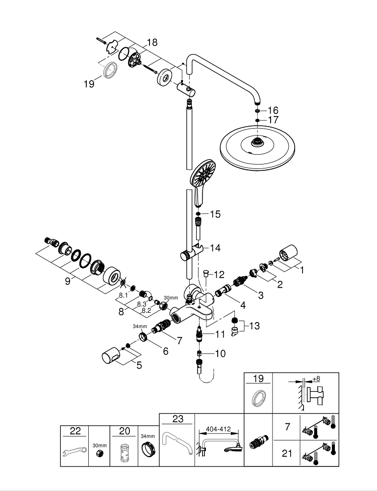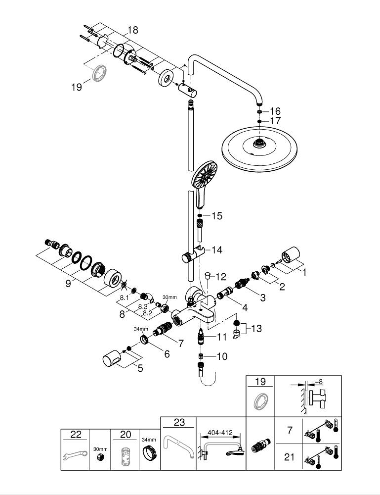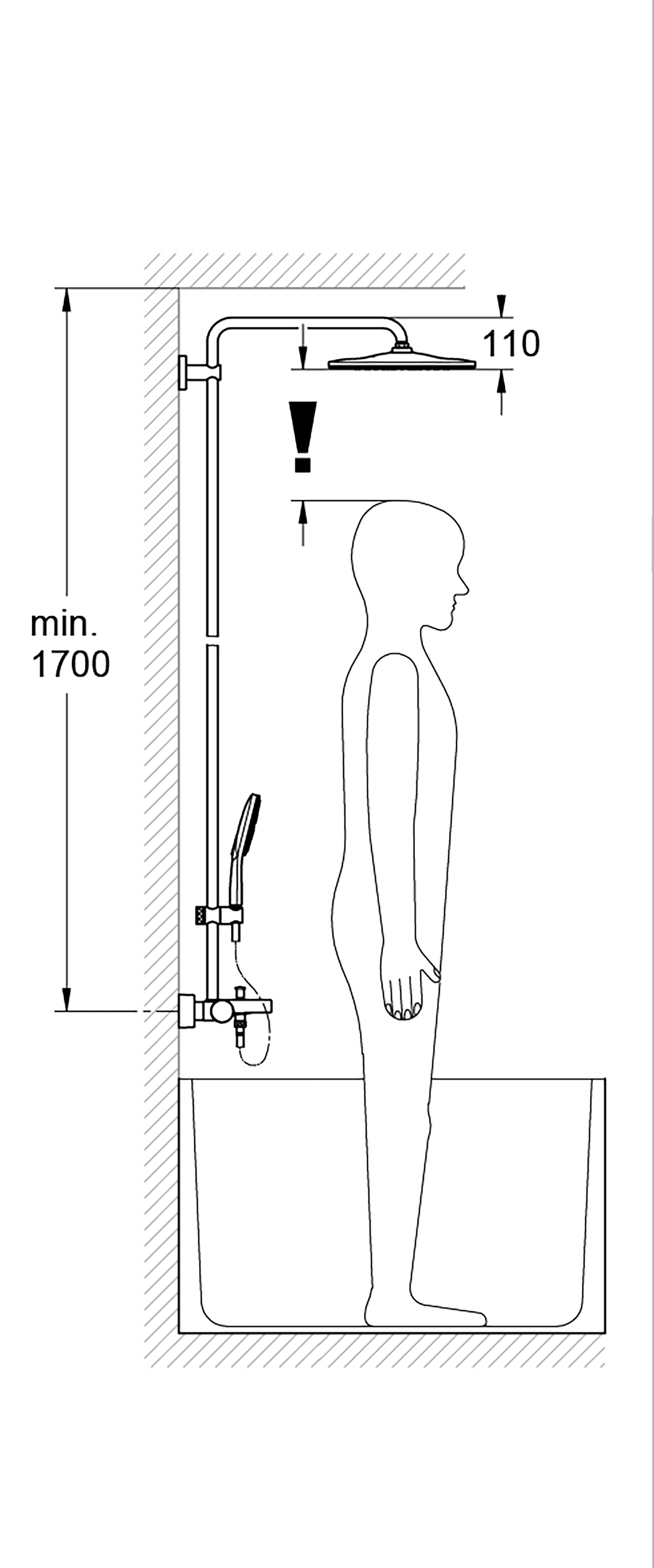 GROHE FastFixation: verstelbare afstand van de bovenste glijstangbevestiging voor montage in bestaande boorgaten