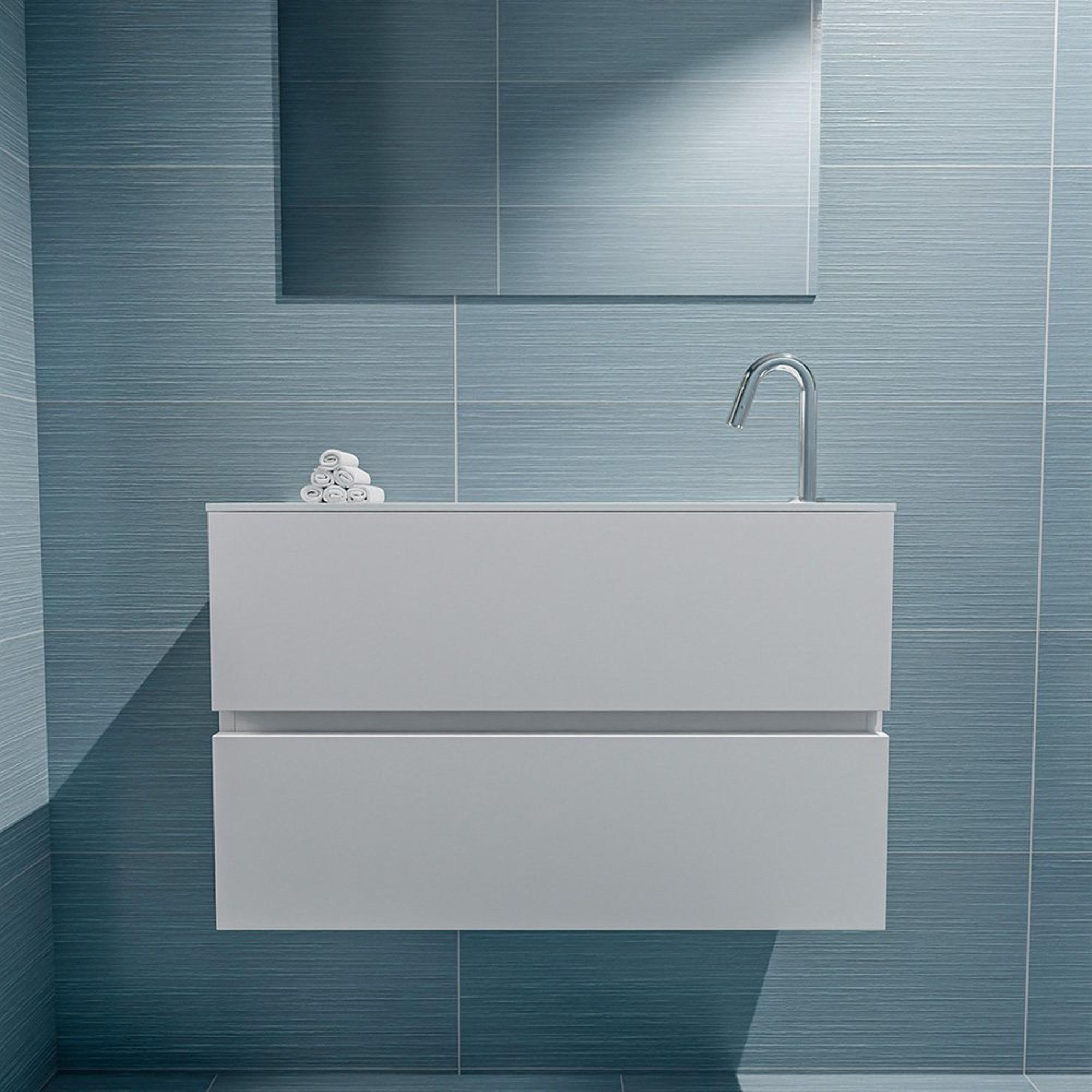 MONDIAZ ADA Toiletmeubel - 80x30x50cm - 1 kraangat - 2 lades - talc mat - wasbak rechts - Solid surface - Wit